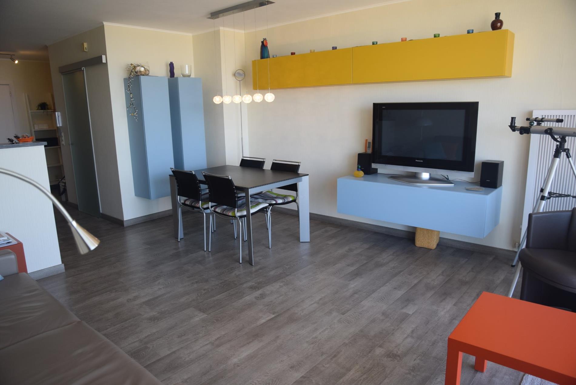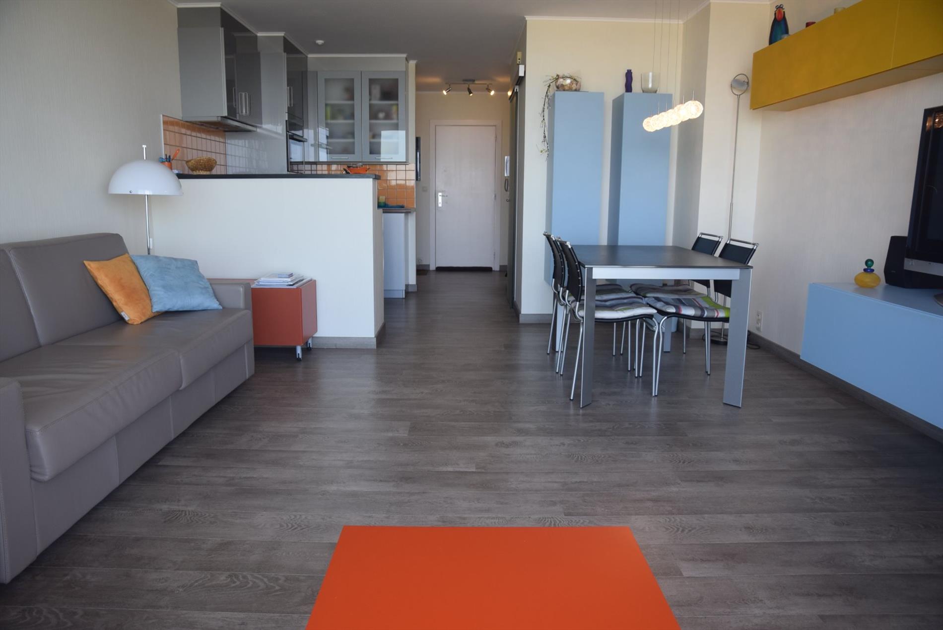 Bestaande uit ruime living met terras en frontaal zeezicht, nieuwe modern volledig ingerichte keuken, twee slaaphoeken, badkamer met bad, lavabo en wc. Kelder onderaan deze residentie inbegrepen. Mogelijkheid tot aankoop van een staanplaats onder de residentie (€12.500). Gebouw werd compleet gerenoveerd in het jaar 2017. Bezichtiging op afspraak.