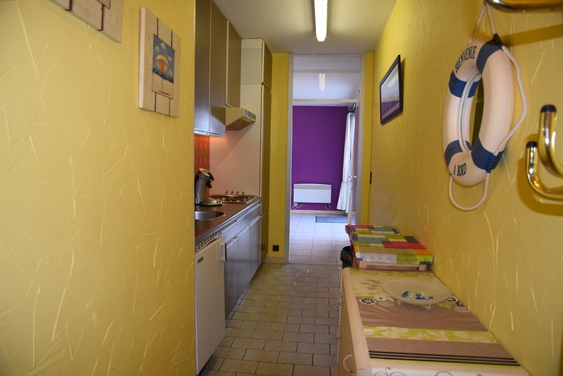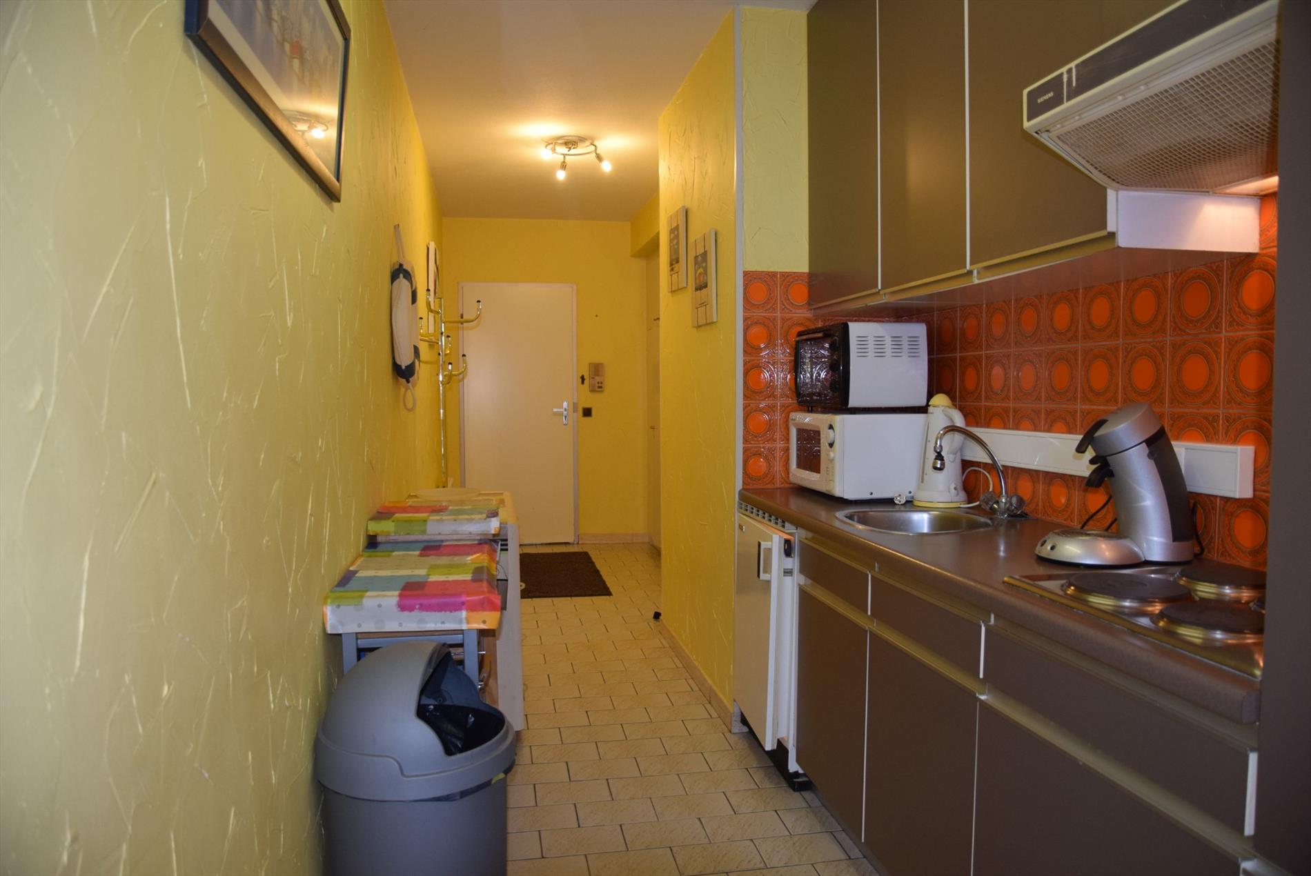 Bestaande uit een hal met vestiaire kasten, woonkamer met terras, ingerichte keuken, 1 grote slaapkamer, badkamer met ligbad en dubbele lavabo en apart toilet. Gemeubeld. Gelijkvloerse verdieping. Gemeenschappelijke fietsenberging Vuilnislokaal. De façade van deze residentie werd begin 2018 compleet vernieuwd inclusief nieuwe balustrades. U vindt meer informatie op onze eigen website: www.immocattaert.be