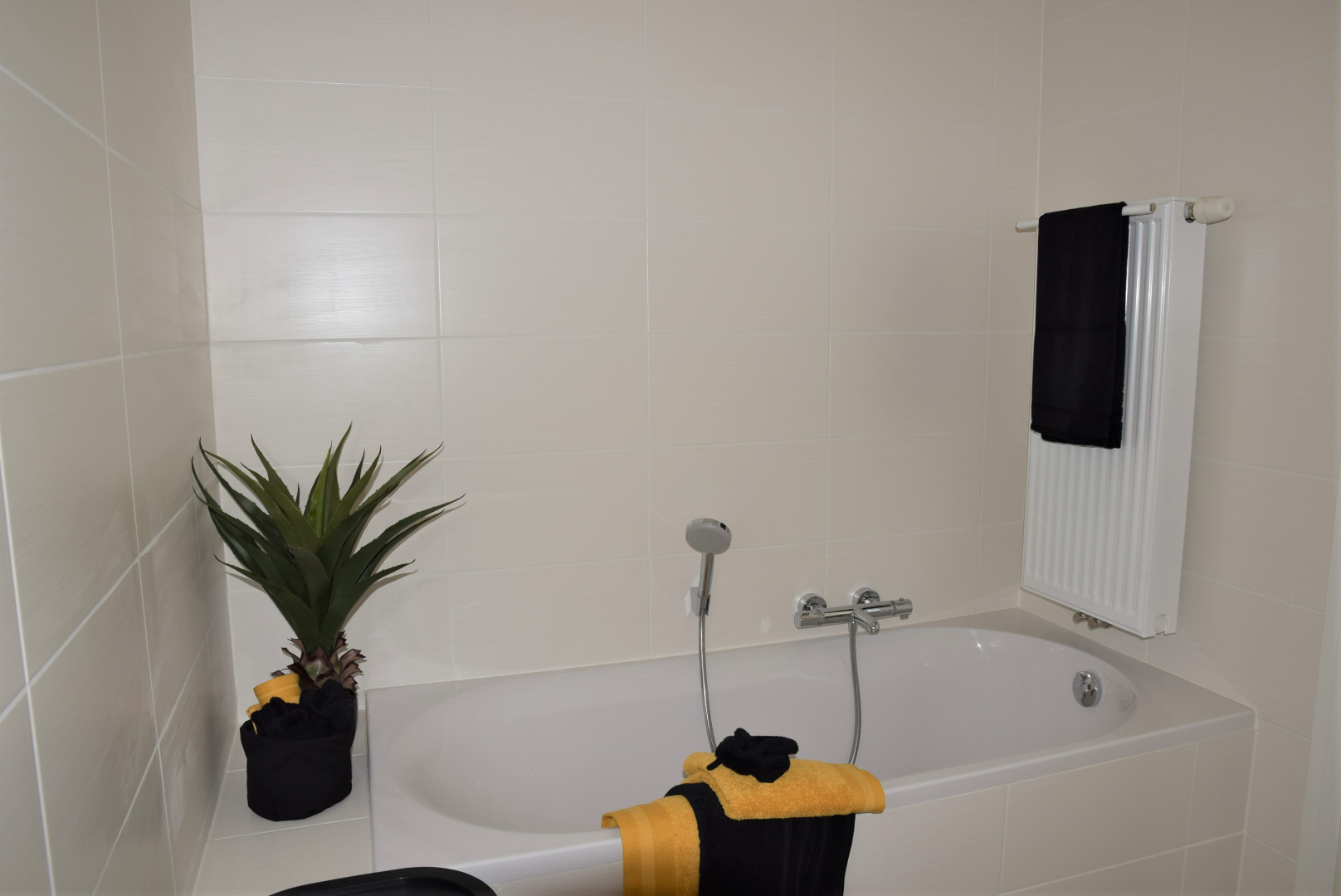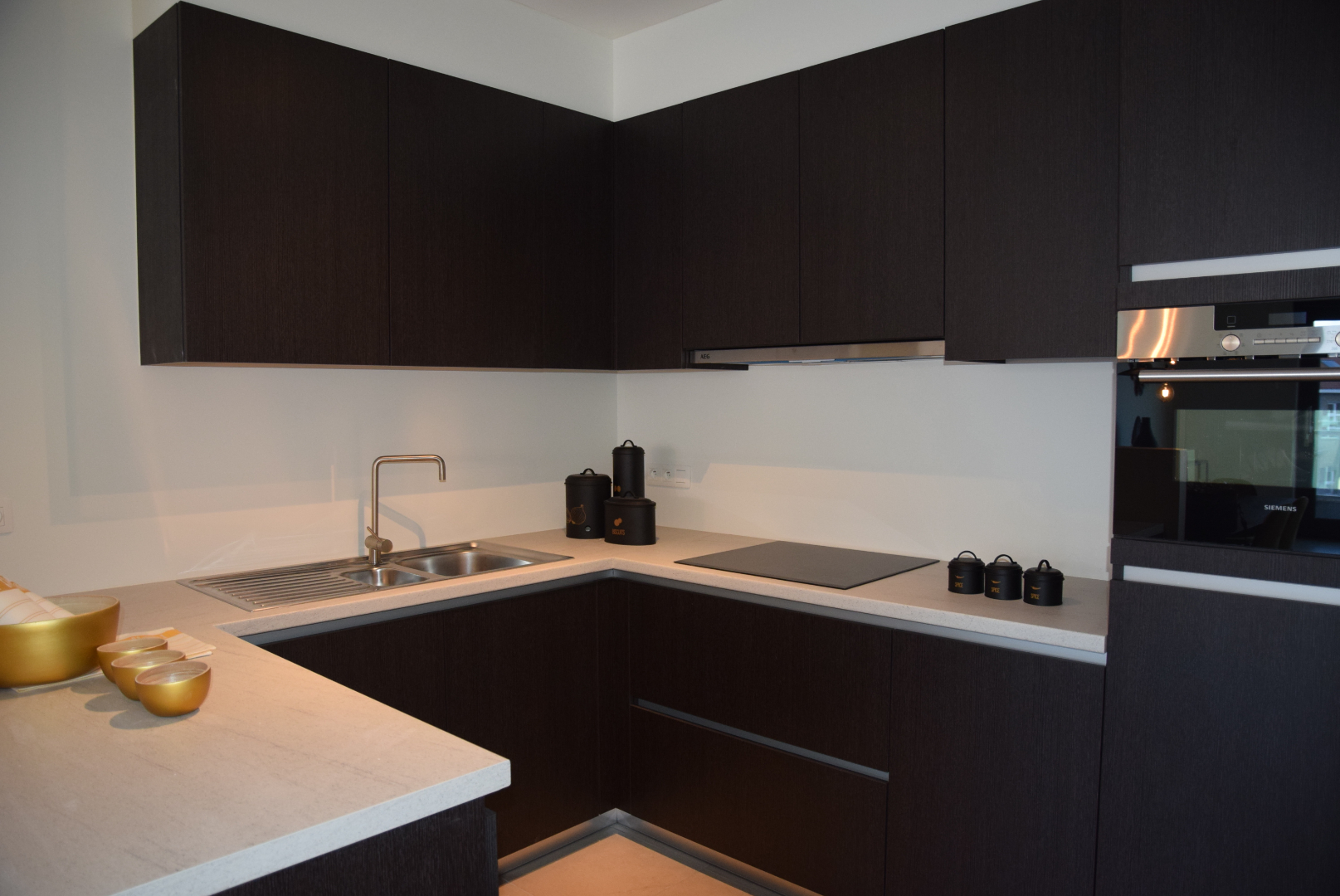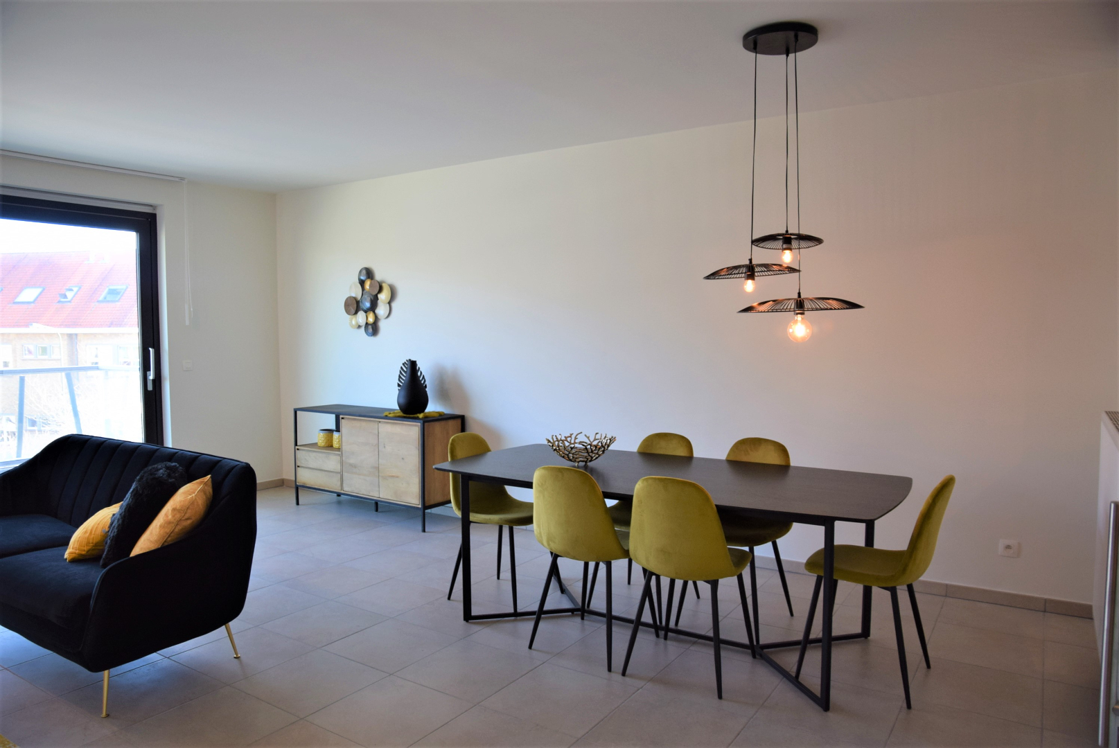 bestaande uit: inkomhal, vestiaire, apart toilet, grote woonkamer met open keuken en aangrenzend groot terras (24,45 m2), berging met wasmachine aansluiting, 2 ruime slaapkamers, luxueuze badkamer met ligbad en lavabo. Het complex is gebouwd onder moderne tijdloze architectuur en heeft verder aangelegde tuinen, grote gesloten garages, private kelders, uitzonderlijke thermische en akoestische isolatie, E peil tussen 45 en 65, luxueuze vloerbekleding, kwaliteitsvolle keuken en individuele verwarming op aardgas. AANVANG WERKEN MEI 2021!