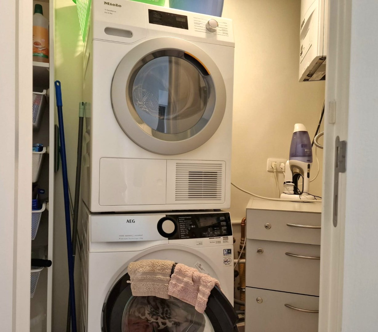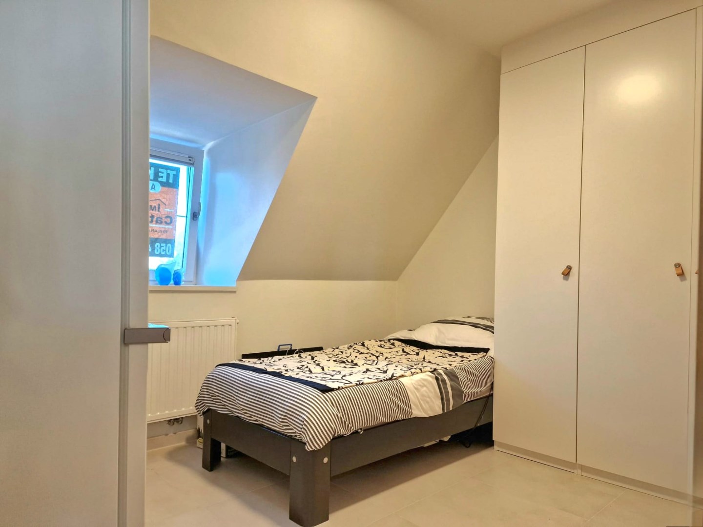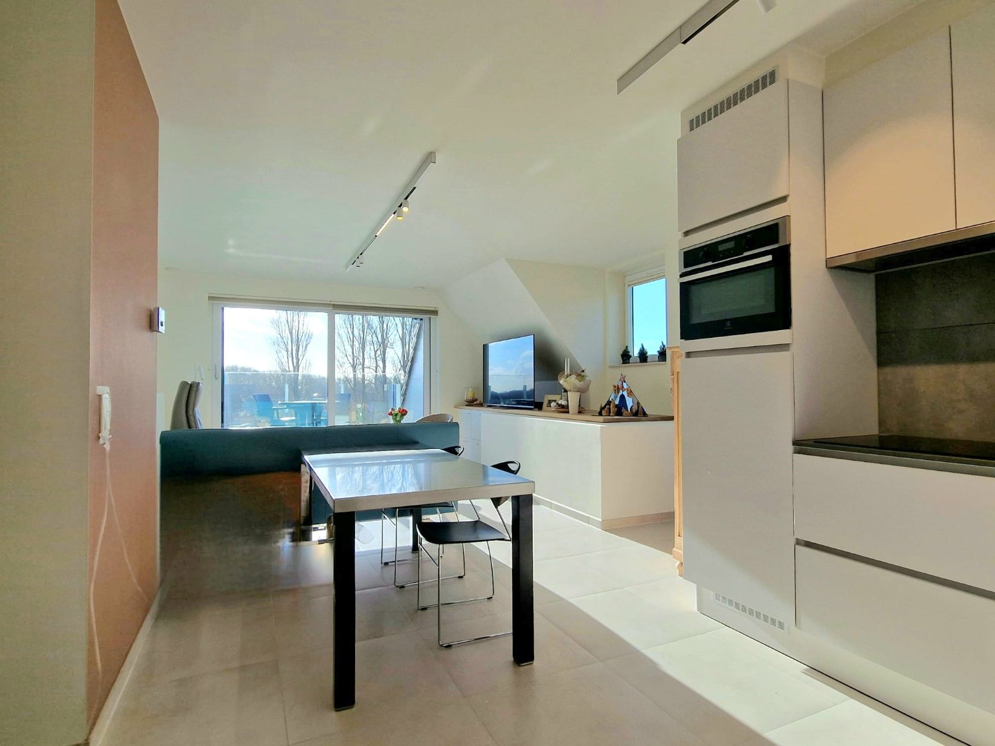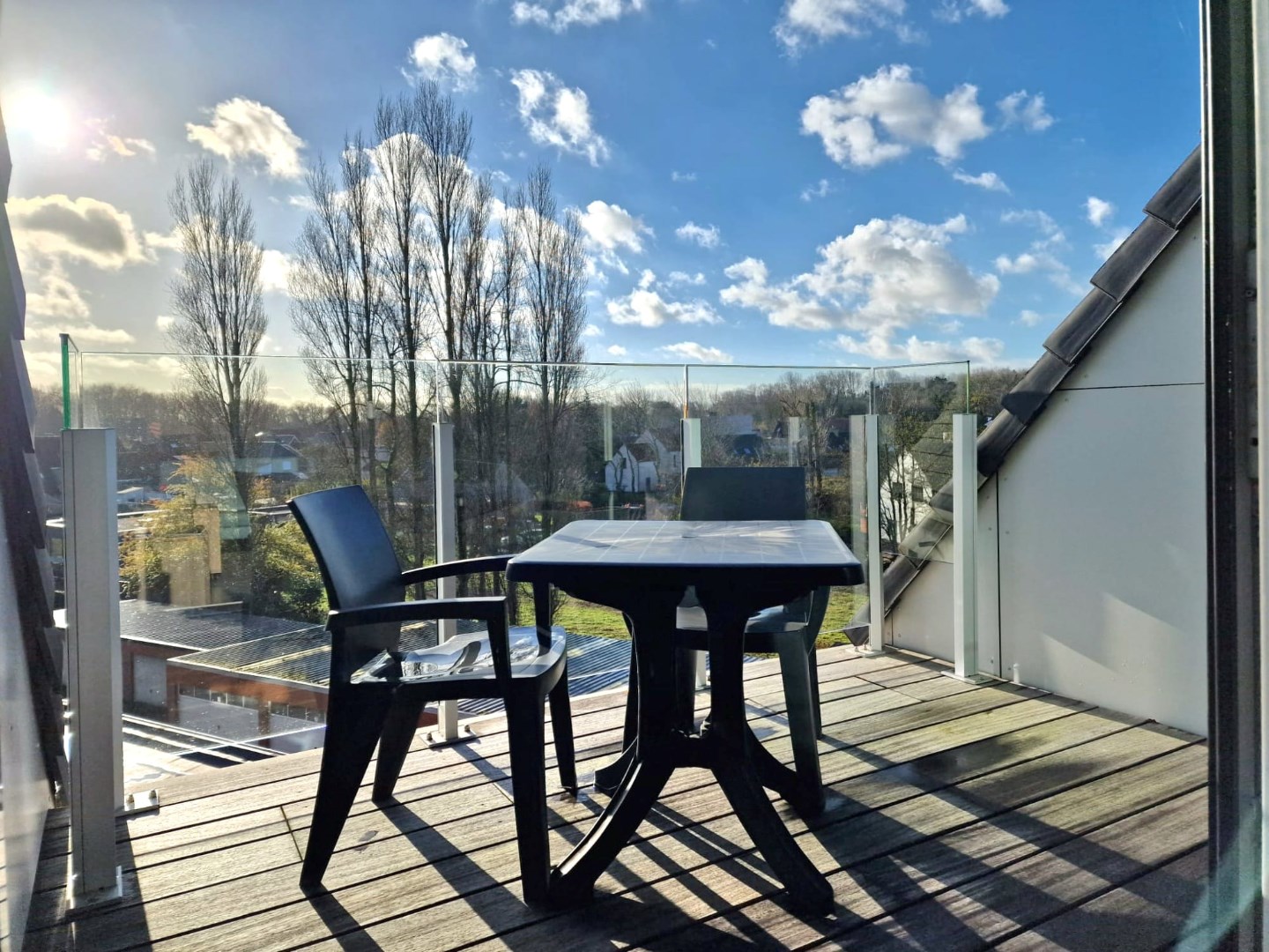 Bestaande uit : inkomhal, living met 2 zonneterrassen, open ingerichte keuken, 2 slaapkamers, badkamer met inloopdouche en dubbele lavabo, apart toilet met lavabo meubel en berging met aansluiting voor wasmachine en droogkast. Privatieve kelder inbegrepen. Mogelijkheid tot aankoop van een grote garagebox. Fietsenberging en vuilnislokaal. Meer informatie vindt u op onze eigen website, www.immocattaert.be, onder de rubrieken "kenmerken en documenten". Bezichtigingen enkel mogelijk op afspraak. Een aanrader.