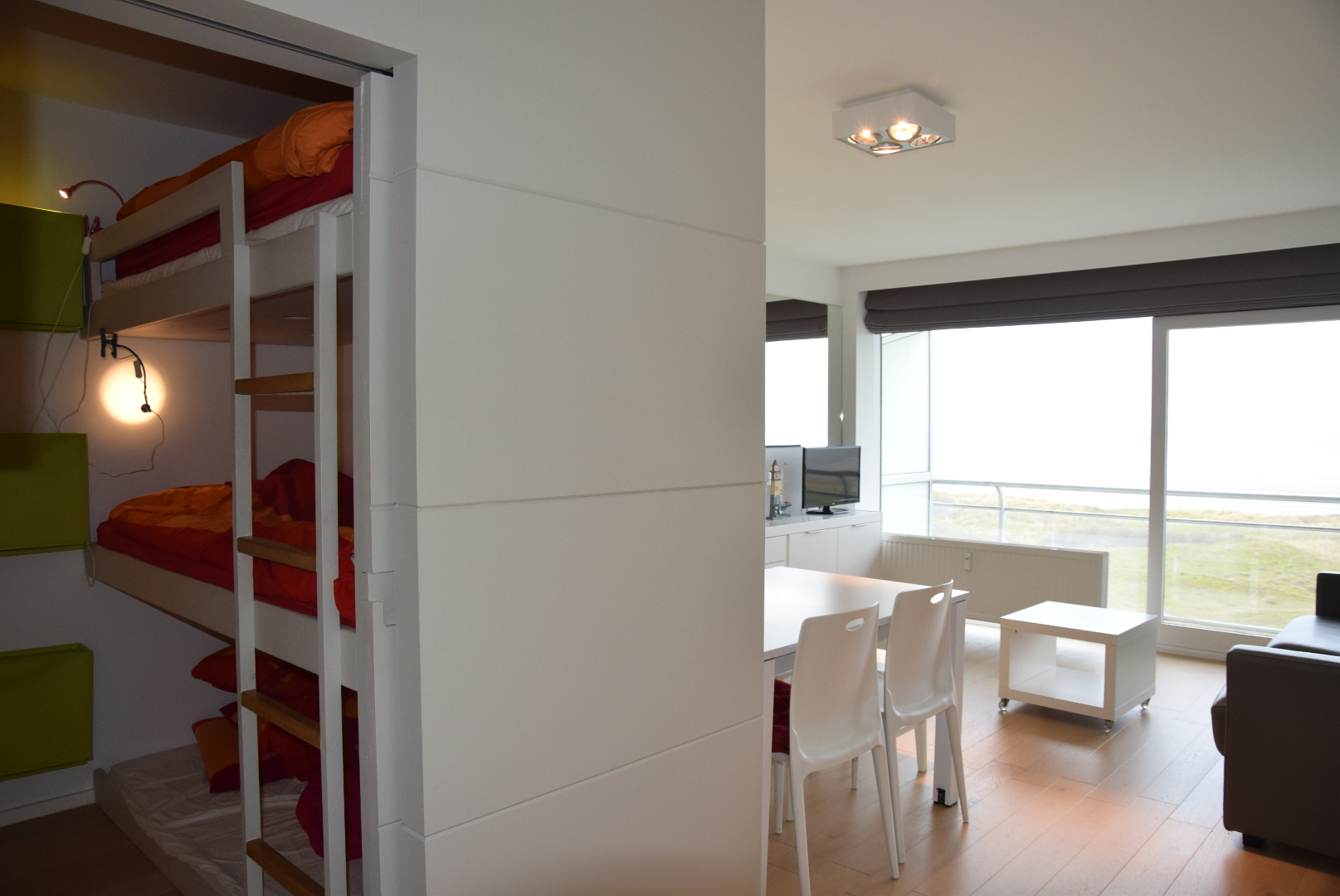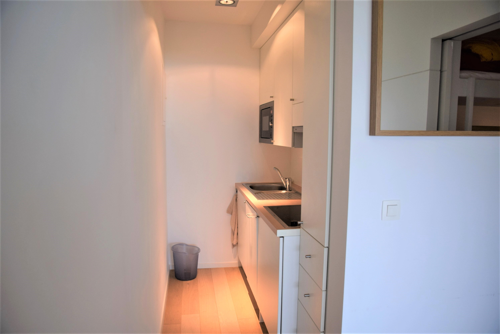 Bestaande uit inkom met vestiairekast, living met frontaal zeezicht en terras, ingerichte keuken voorzien van alle apparatuur, slaaphoek met stapelbed voor 3 personen, moderne badkamer met inloopdouche en lavabo. Apart toilet. Staanplaats + kast inbegrepen in de prijs. Fietsenberging en vuilnislokaal. Wordt gemeubeld verkocht. Elektriciteit in conformiteit. Bezichtiging enkel op afspraak. U vindt meer informatie op onze website, www.immocattaert.be