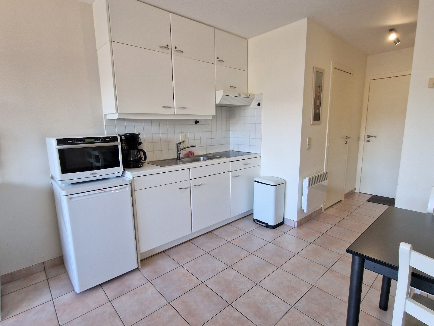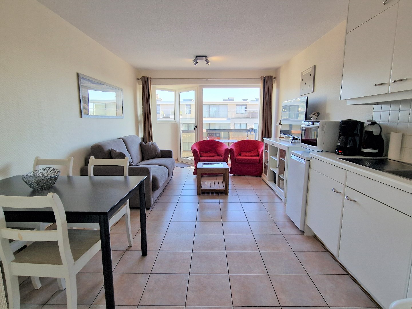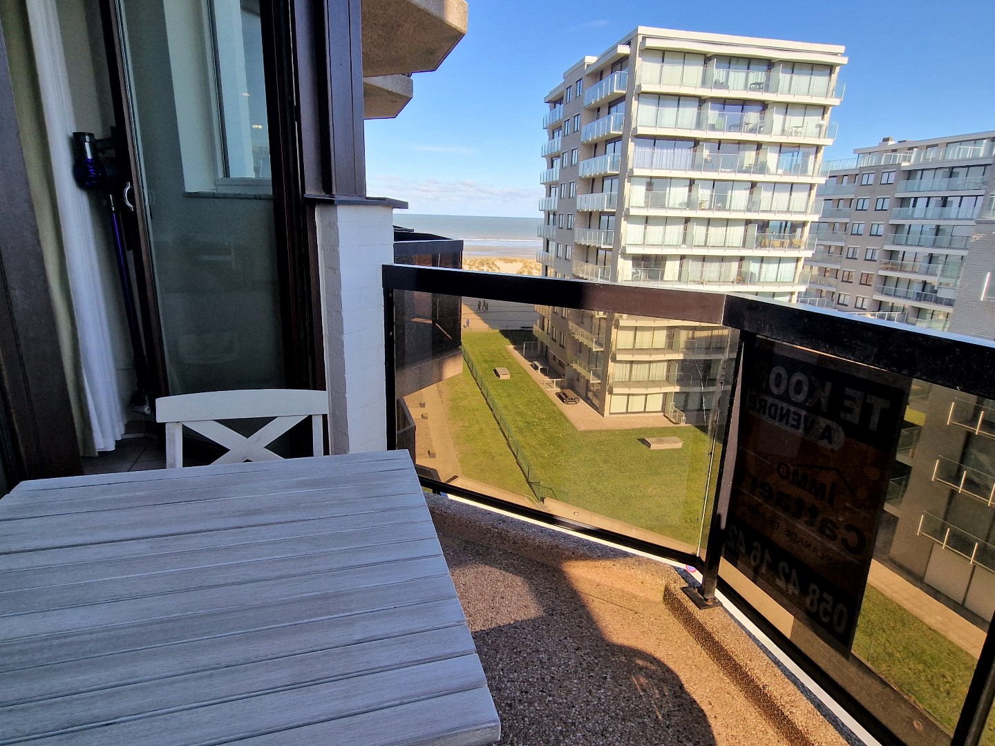 Bestaande uit living met terras en mooi zijdelings zeezicht, open ingerichte keuken, slaaphoek met stapelbed, badkamer met douche, lavabo, bergkast en toilet. Fietsenberging. Vuilnislokaal. De façade werd volledig geschilderd in 2018. Gemeubeld. Bezichtigingen enkel op afspraak. U vindt meer informatie op onze eigen website, www.immocattaert.be, onder de rubrieken "kenmerken en documenten".