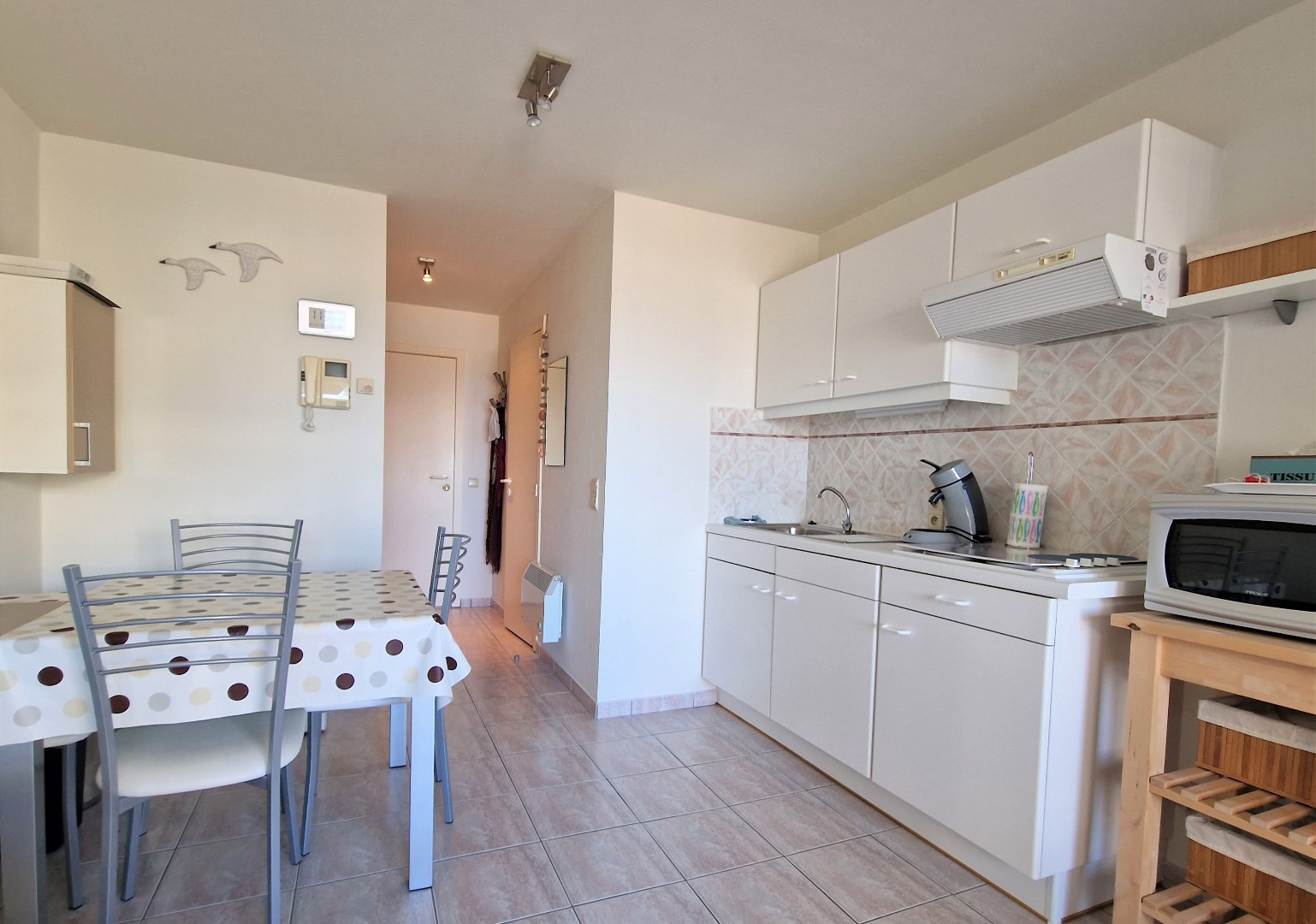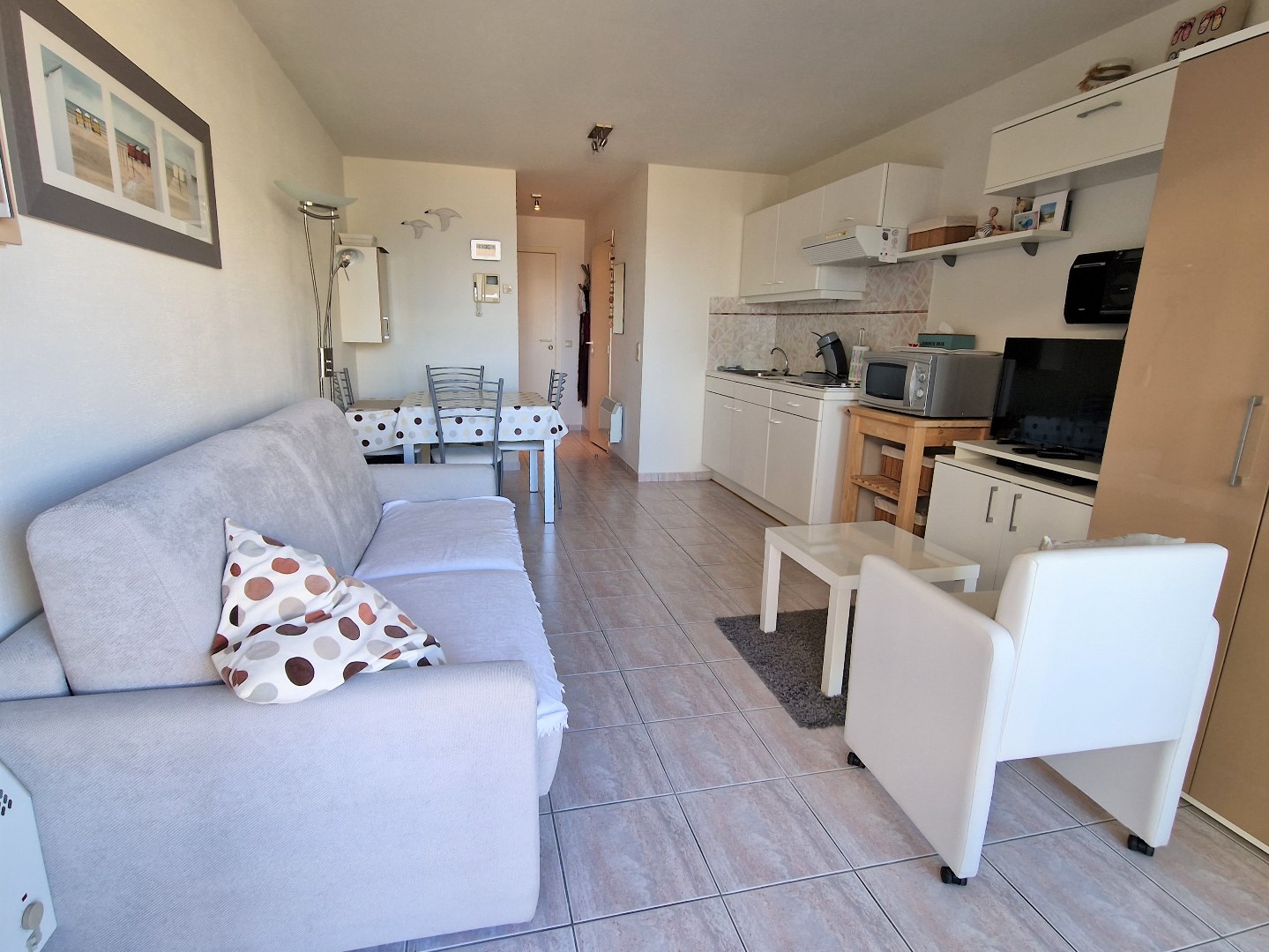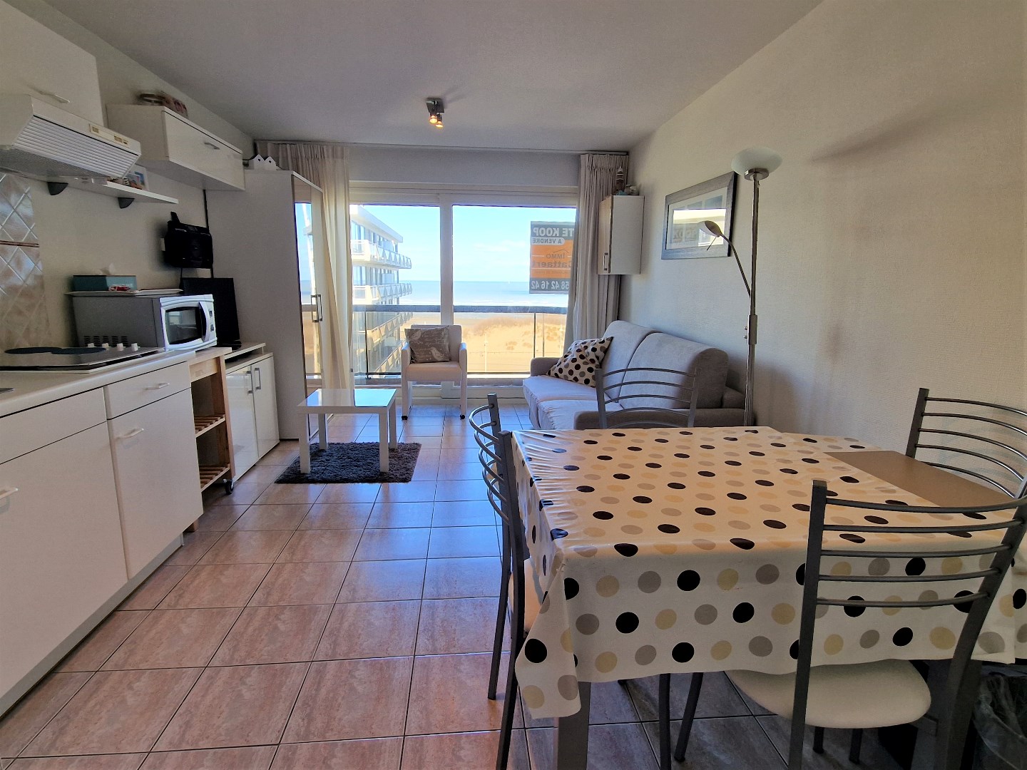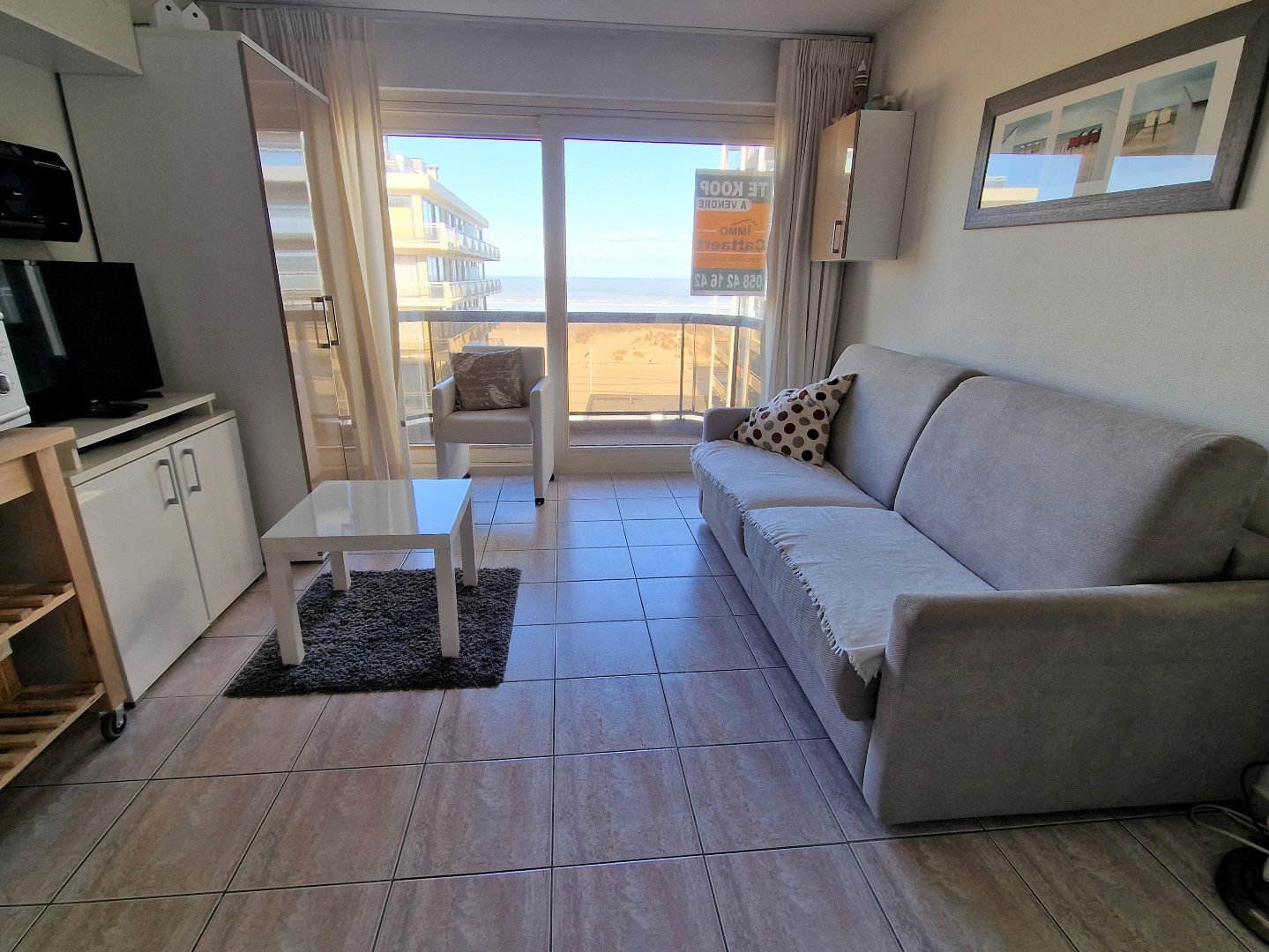 Bestaande uit living met terras en frontaal zeezicht, ingerichte open keuken, slaaphoek met stapelbed, badkamer met ligbad, lavabo en toilet. 6de verdieping. Elektriciteit in conformiteit tot 9/02/2036. De gevel werd in 2018 volledig geschilderd. Gemeubeld. Uitgerust voor 4 personen. Fietsenberging. Vuilnislokaal. Bezoeken enkel op afspraak. U vindt meer informatie op onze eigen website, www.immocattaert.be, onder de rubrieken "kenmerken en documenten".