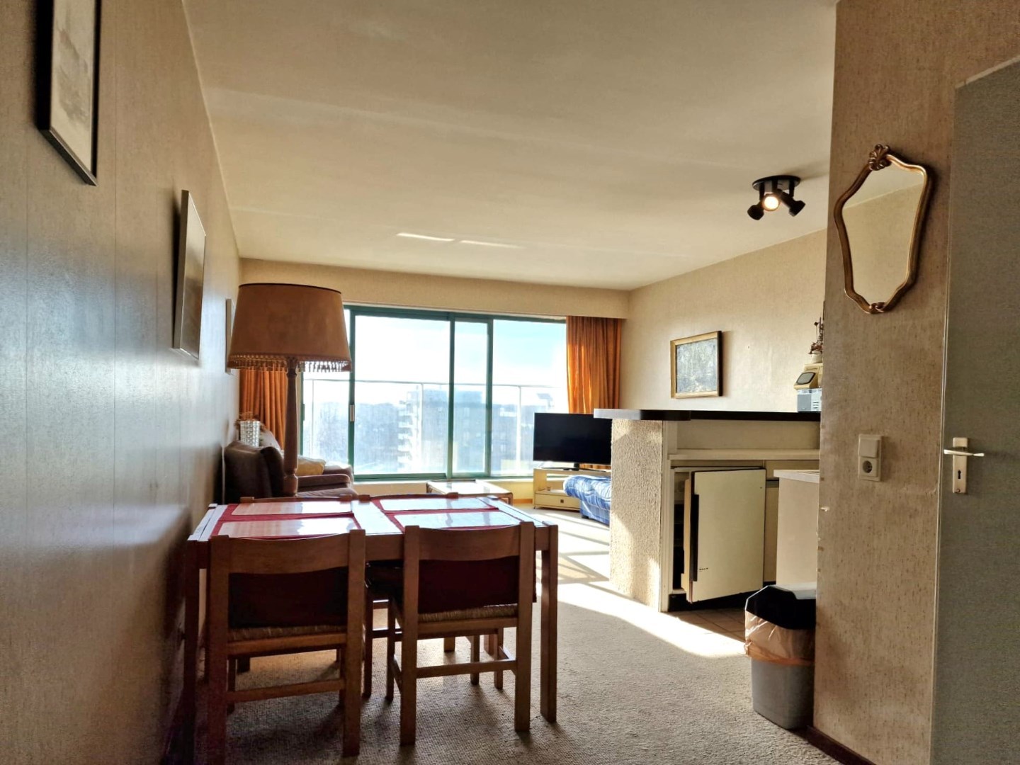 RUIME ZONNIGE STUDIO MET AFGESLOTEN SLAAPHOEK VLAKBIJ DE LEOPOLD I ESPLANADE EN ONMIDDELLIJK AAN HET STRAND TE DE PANNE