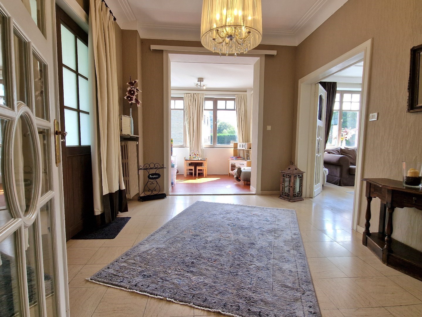 Bestaande uit: Inkomhal, ruime lichtrijke living, compleet ingerichte keuken, eetkamer, speelkamer, 6 slaapkamers allen uitgerust met lavabo, 2 badkamers waarvan één met douche, bad, wc en lavabo en één met inloopdouche, wc, lavabo en WC. Grote garage + wasruimte. Lift aanwezig in de villa. Volledig omheinde onderhoudsvriendelijke zonnige tuin met pétanque-baan en speeltoestellen voor de kinderen, ruime oprit met plaats voor 4 wagens. Bezichtigingen enkel op afspraak. U vindt meer informatie op onze eigen website, www.immocattaert.be, onder de rubrieken “kenmerken en documenten”. TOPLIGGING!