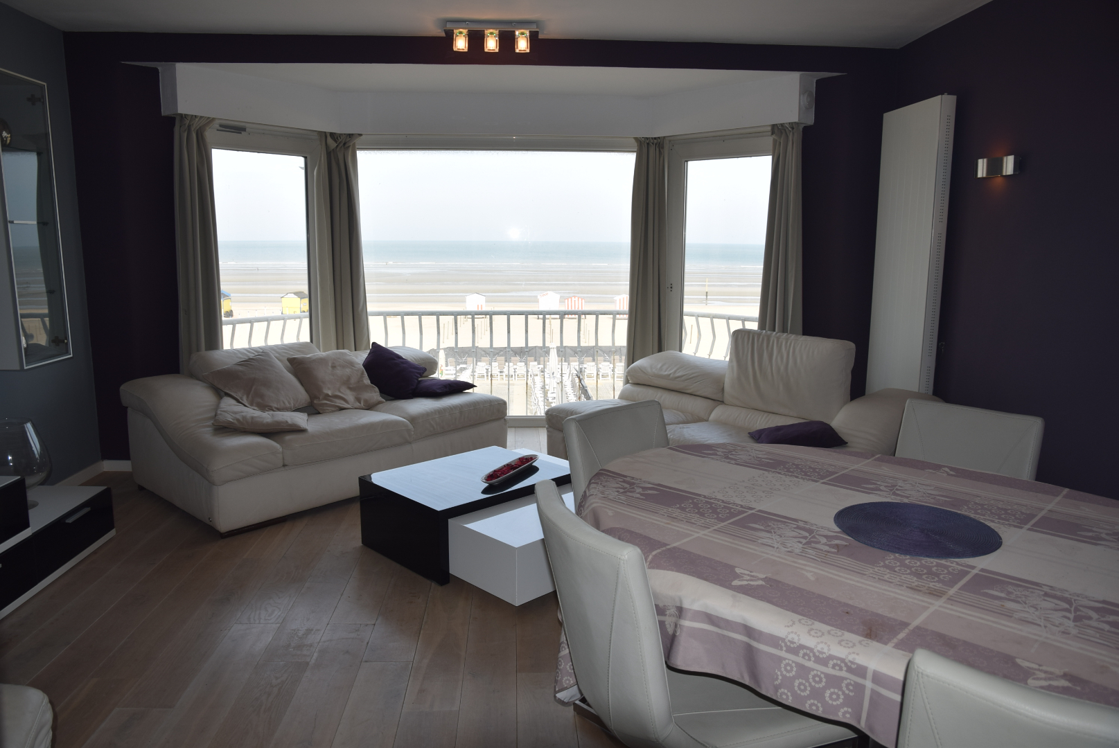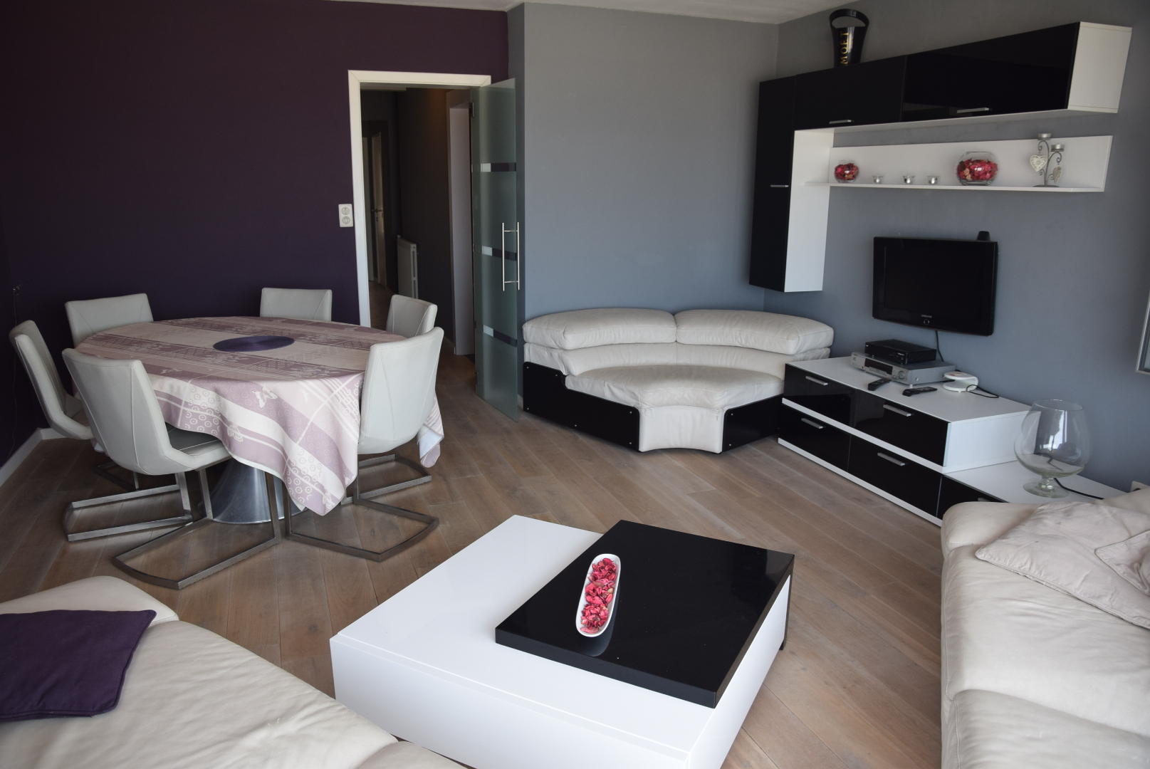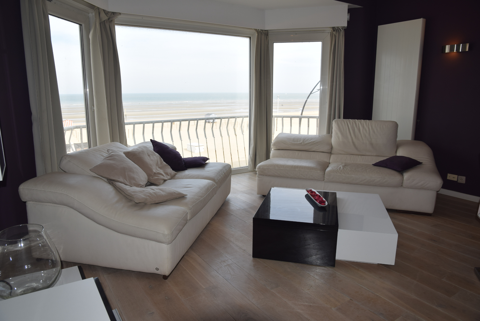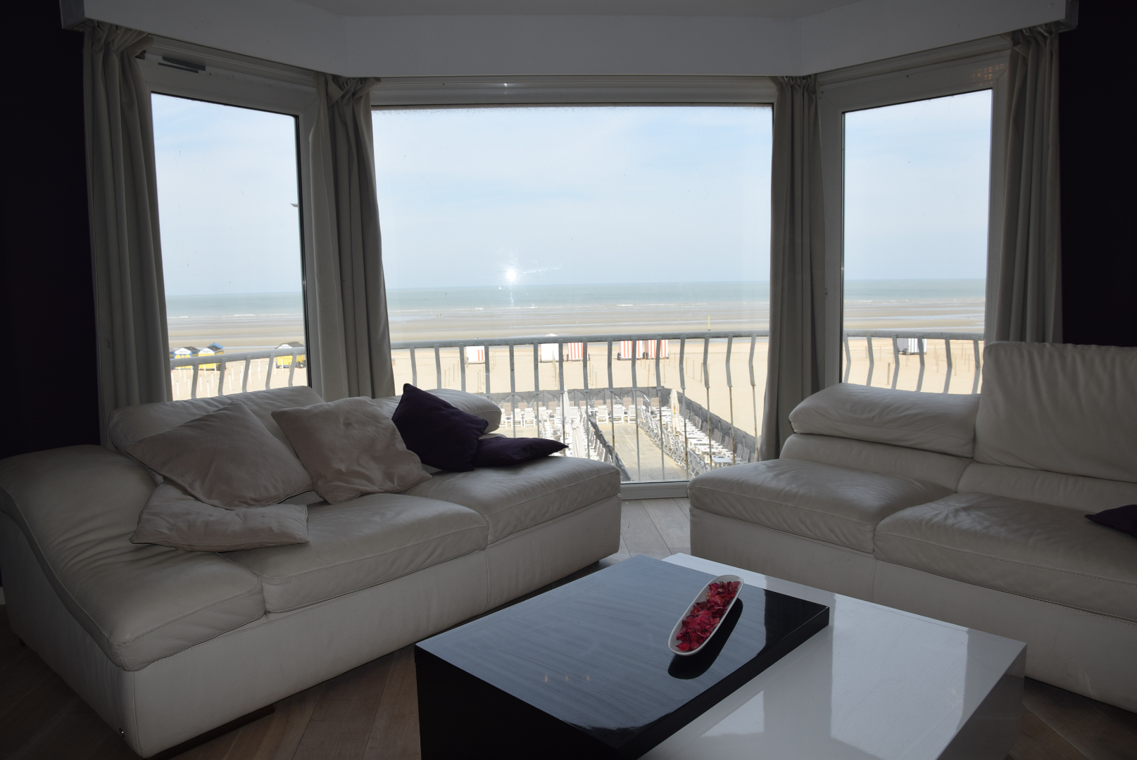 GERENOVEERD DOORLOOP APPARTEMENT (2 slpk's) MET FRONTAAL ZEEZICHT EN EEN ZUIDGERICHT TERRAS GELEGEN OP DE ZEEDIJK EN OP EEN BOOGSCHEUT VAN HET CENTRUM VAN DE PANNE