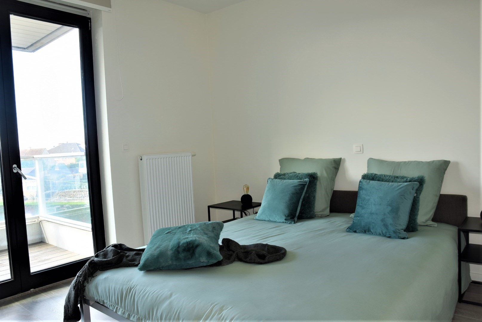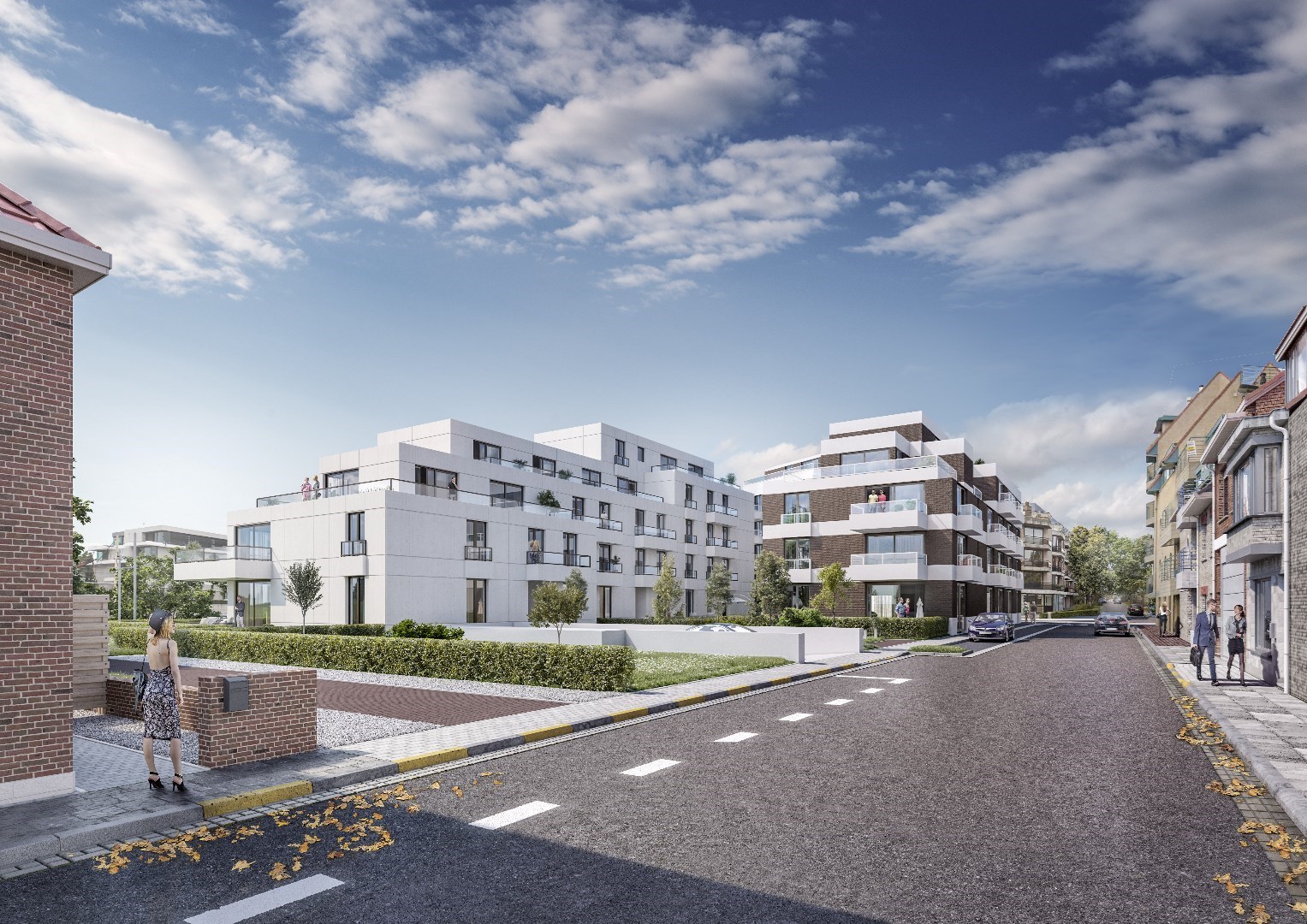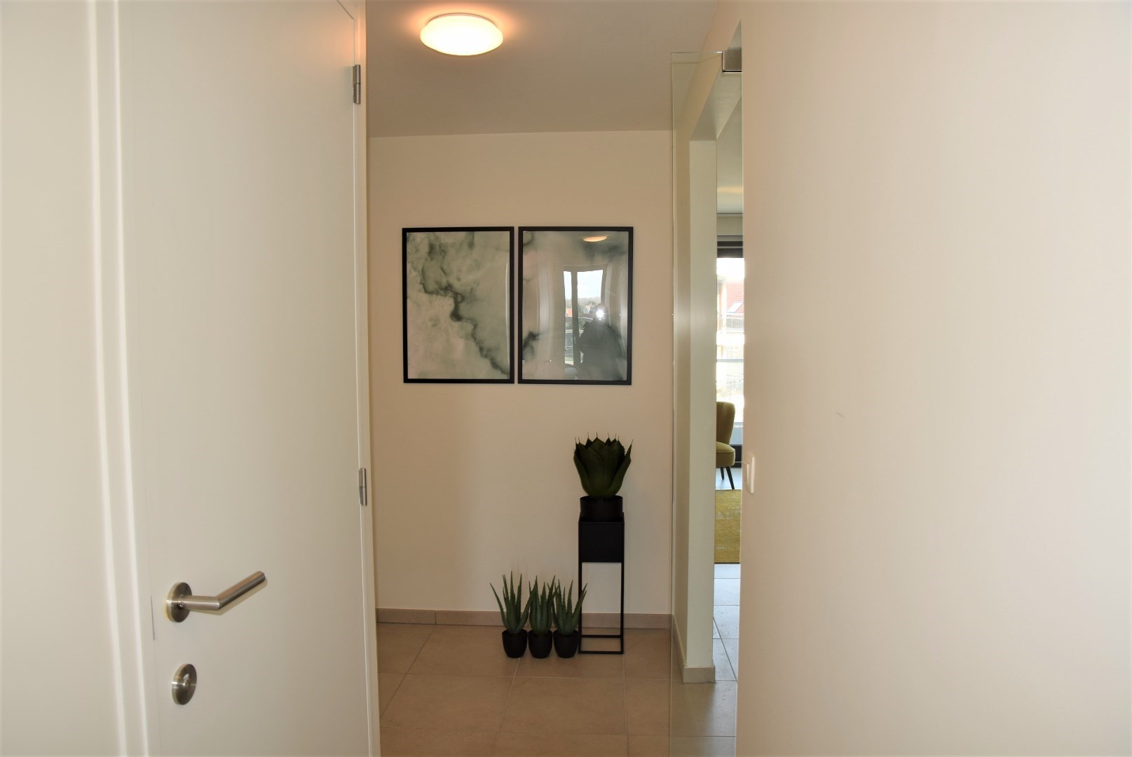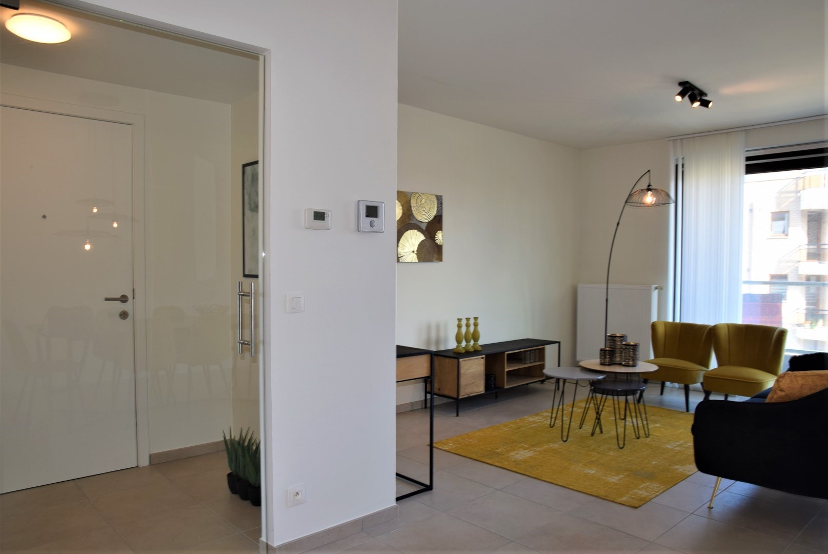 bestaande uit: inkomhal, vestiaire, apart toilet, grote woonkamer met open keuken en aangrenzend groot terras (24,45 m2), berging met wasmachine aansluiting, 2 ruime slaapkamers, luxueuze badkamer met ligbad en lavabo. Het complex is gebouwd onder moderne tijdloze architectuur en heeft verder aangelegde tuinen, grote gesloten garages, private kelders, uitzonderlijke thermische en akoestische isolatie, E peil tussen 45 en 65, luxueuze vloerbekleding, kwaliteitsvolle keuken en individuele verwarming op aardgas. Mogelijk om aan te kopen aan 6% BTW bij vaste bewoning.