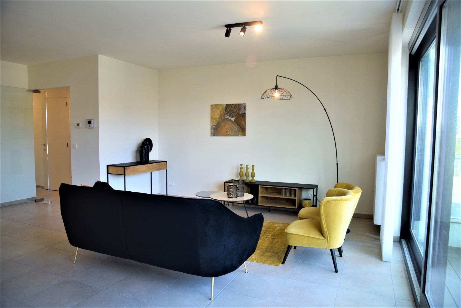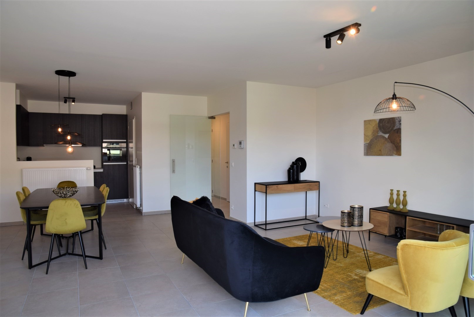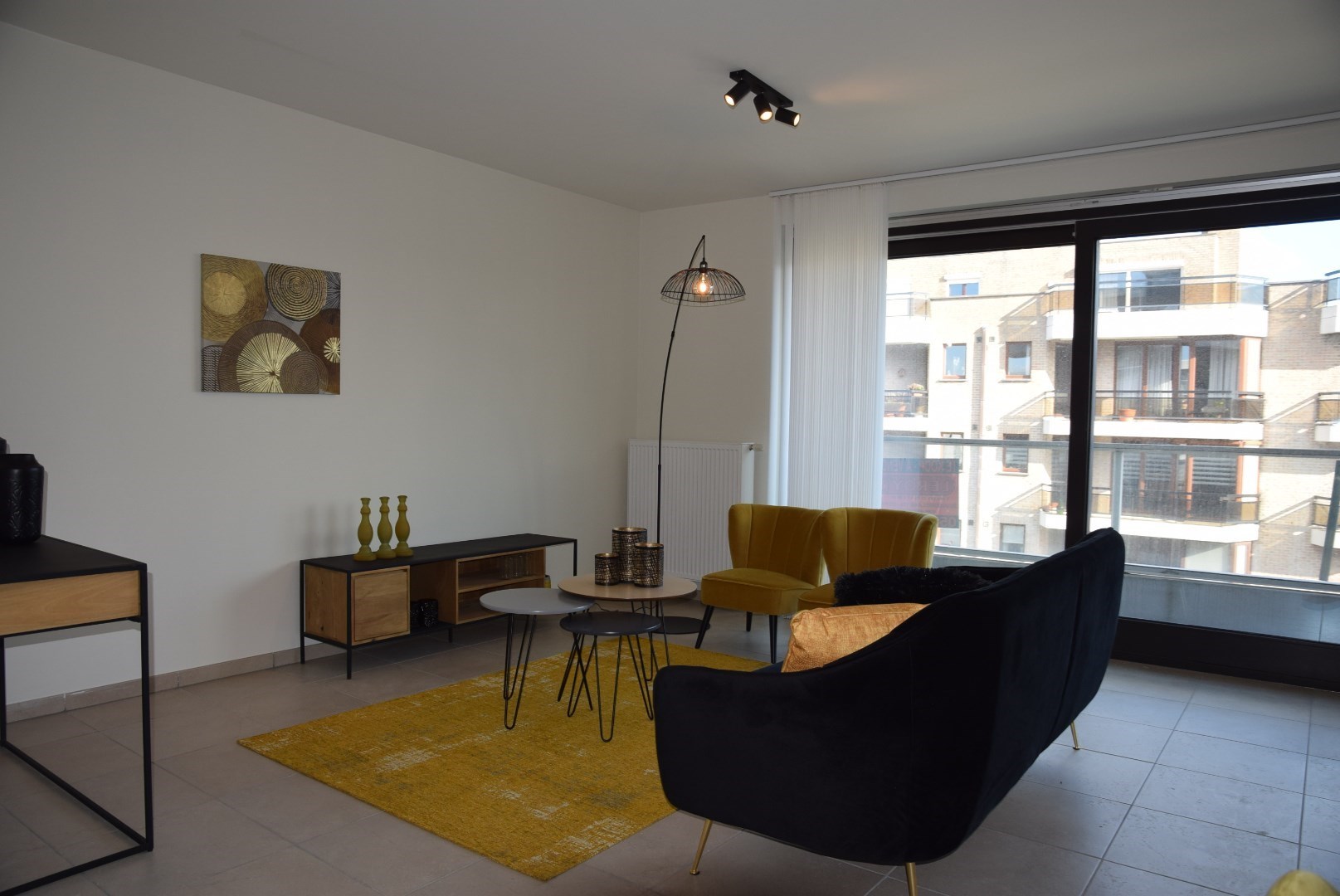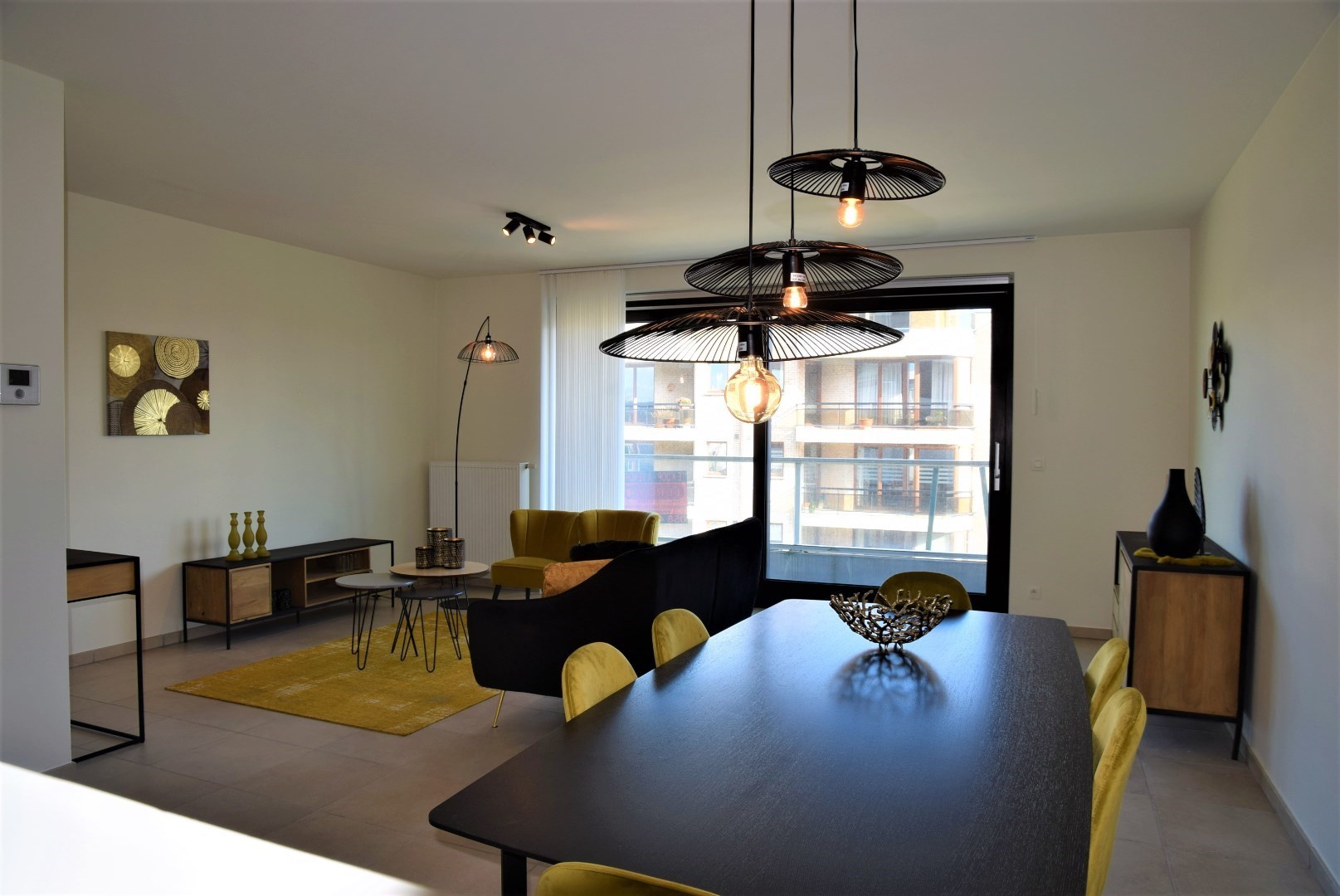 bestaande uit: inkomhal, vestiaire, apart toilet, grote woonkamer met open keuken en aangrenzend groot terras (24,45 m2), berging met wasmachine aansluiting, 2 ruime slaapkamers, luxueuze badkamer met ligbad en lavabo. Het complex is gebouwd onder moderne tijdloze architectuur en heeft verder aangelegde tuinen, grote gesloten garages, private kelders, uitzonderlijke thermische en akoestische isolatie, E peil tussen 45 en 65, luxueuze vloerbekleding, kwaliteitsvolle keuken en individuele verwarming op aardgas. Mogelijk om aan te kopen aan 6% BTW bij vaste bewoning.
