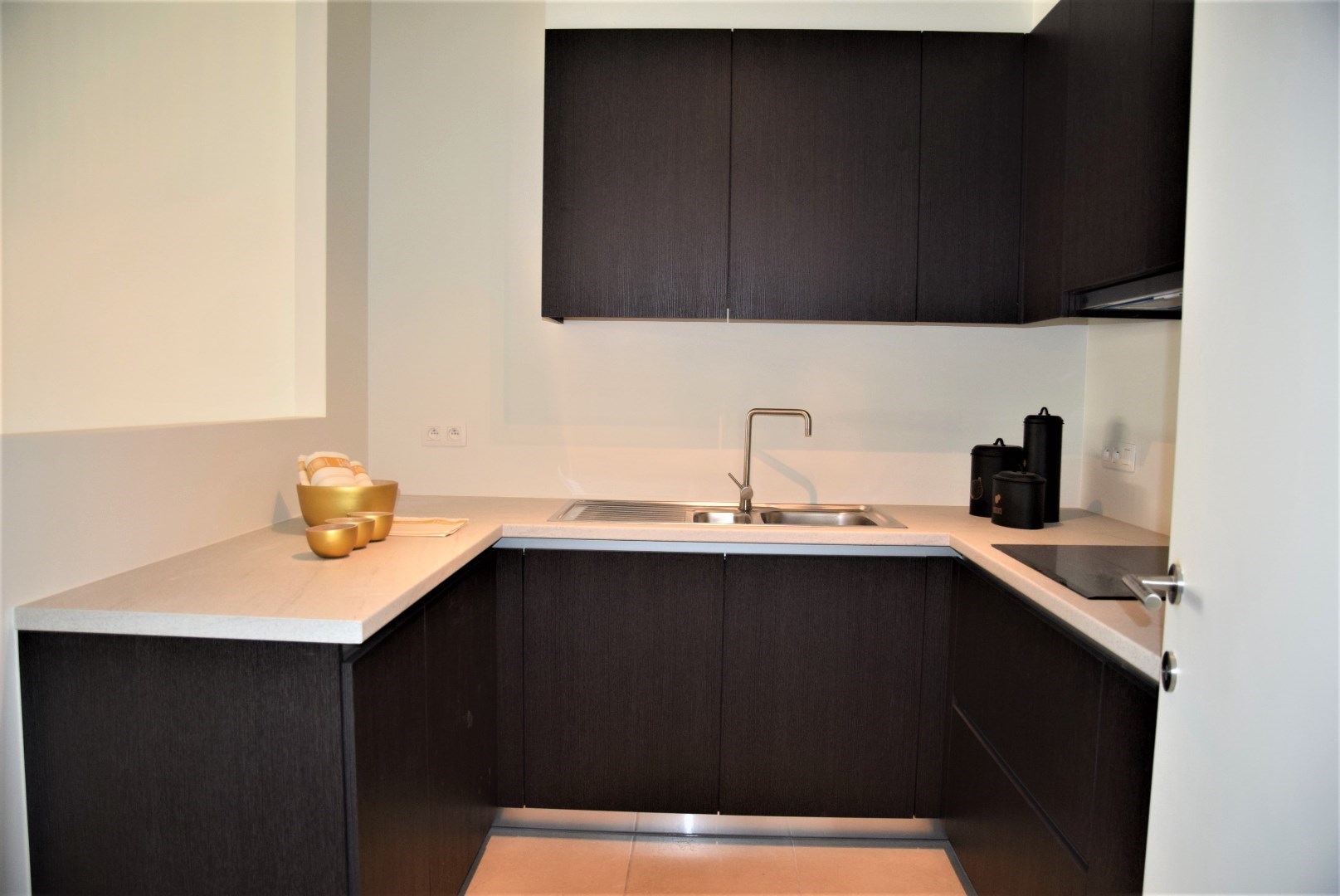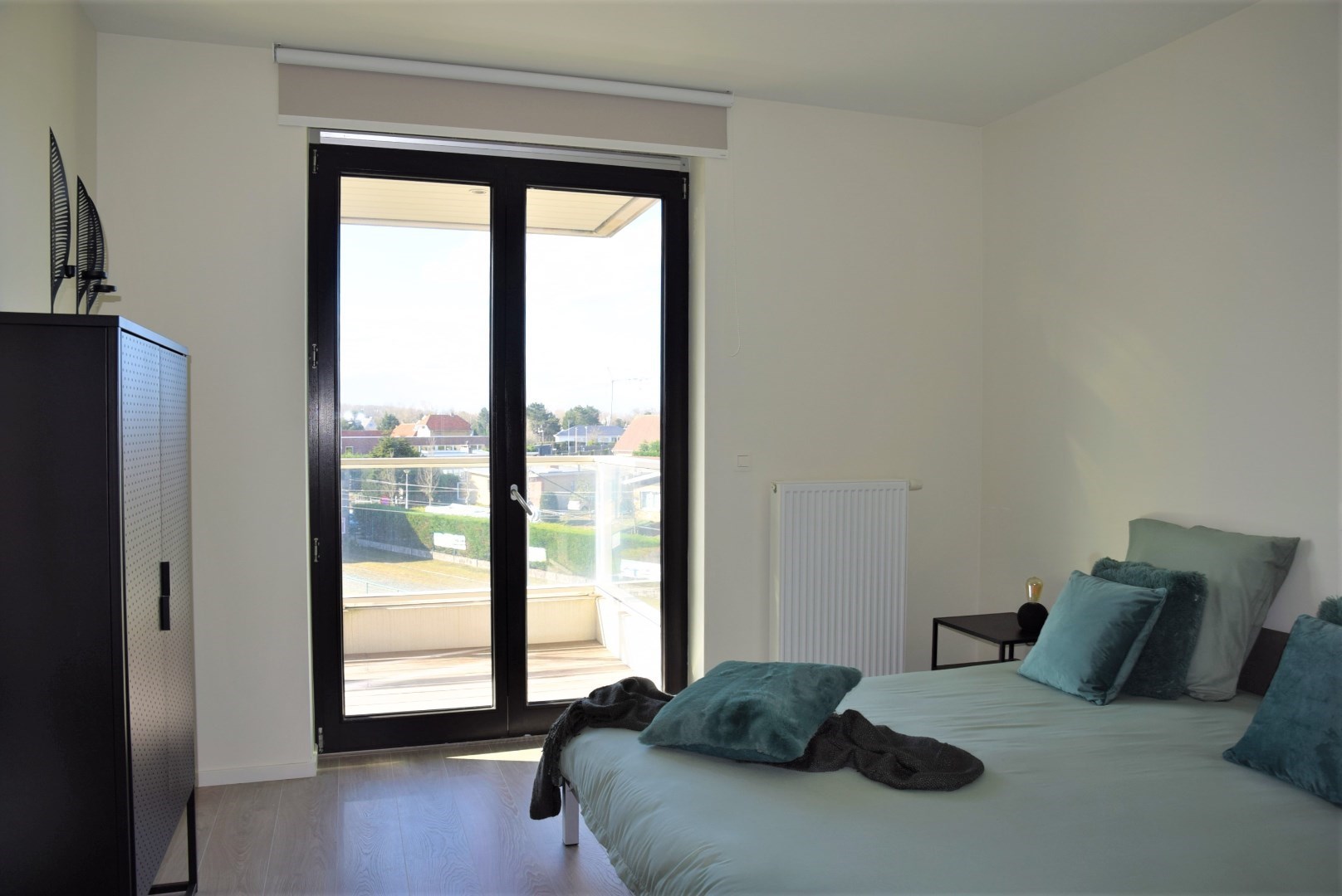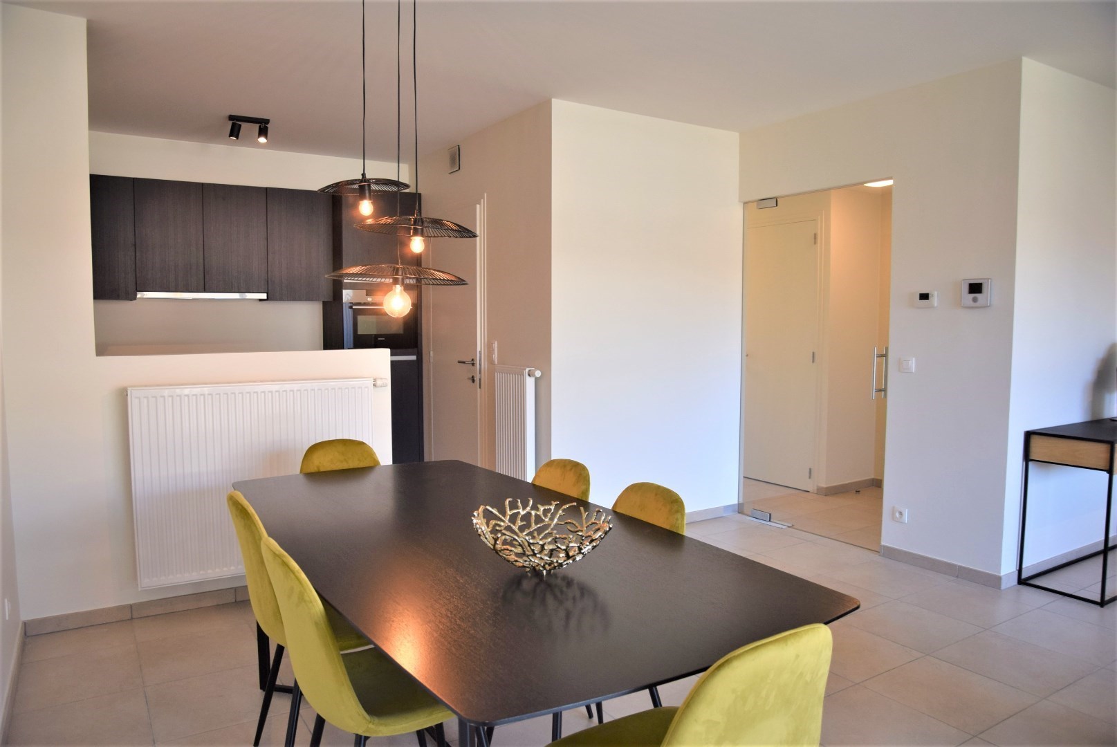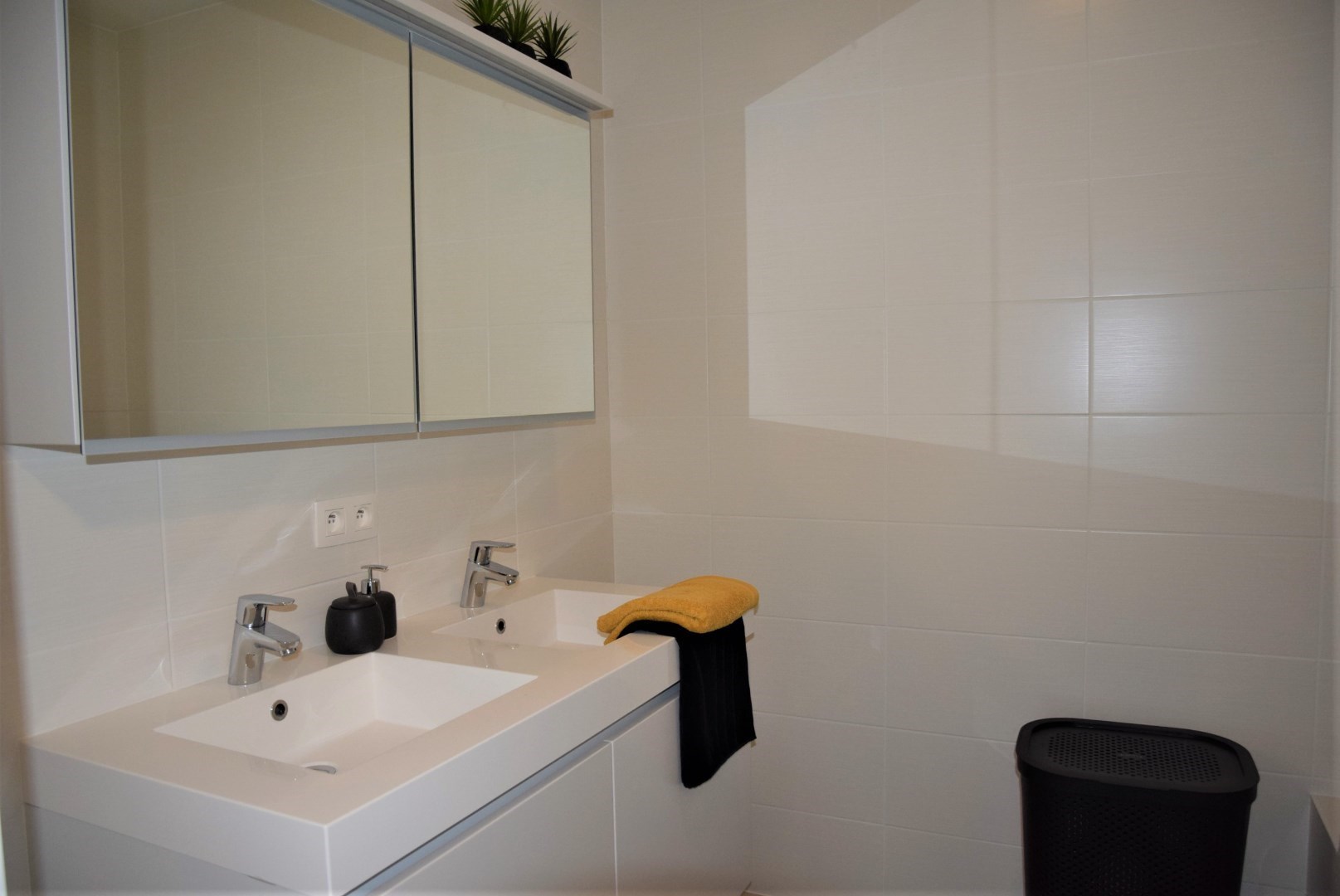 bestaande uit: inkomhal, vestiaire, apart toilet, grote woonkamer met open keuken en aangrenzend groot terras (24,45 m2), berging met wasmachine aansluiting, 2 ruime slaapkamers, luxueuze badkamer met ligbad en lavabo. Het complex is gebouwd onder moderne tijdloze architectuur en heeft verder aangelegde tuinen, grote gesloten garages, private kelders, uitzonderlijke thermische en akoestische isolatie, E peil tussen 45 en 65, luxueuze vloerbekleding, kwaliteitsvolle keuken en individuele verwarming op aardgas. Mogelijk om aan te kopen aan 6% BTW bij vaste bewoning.