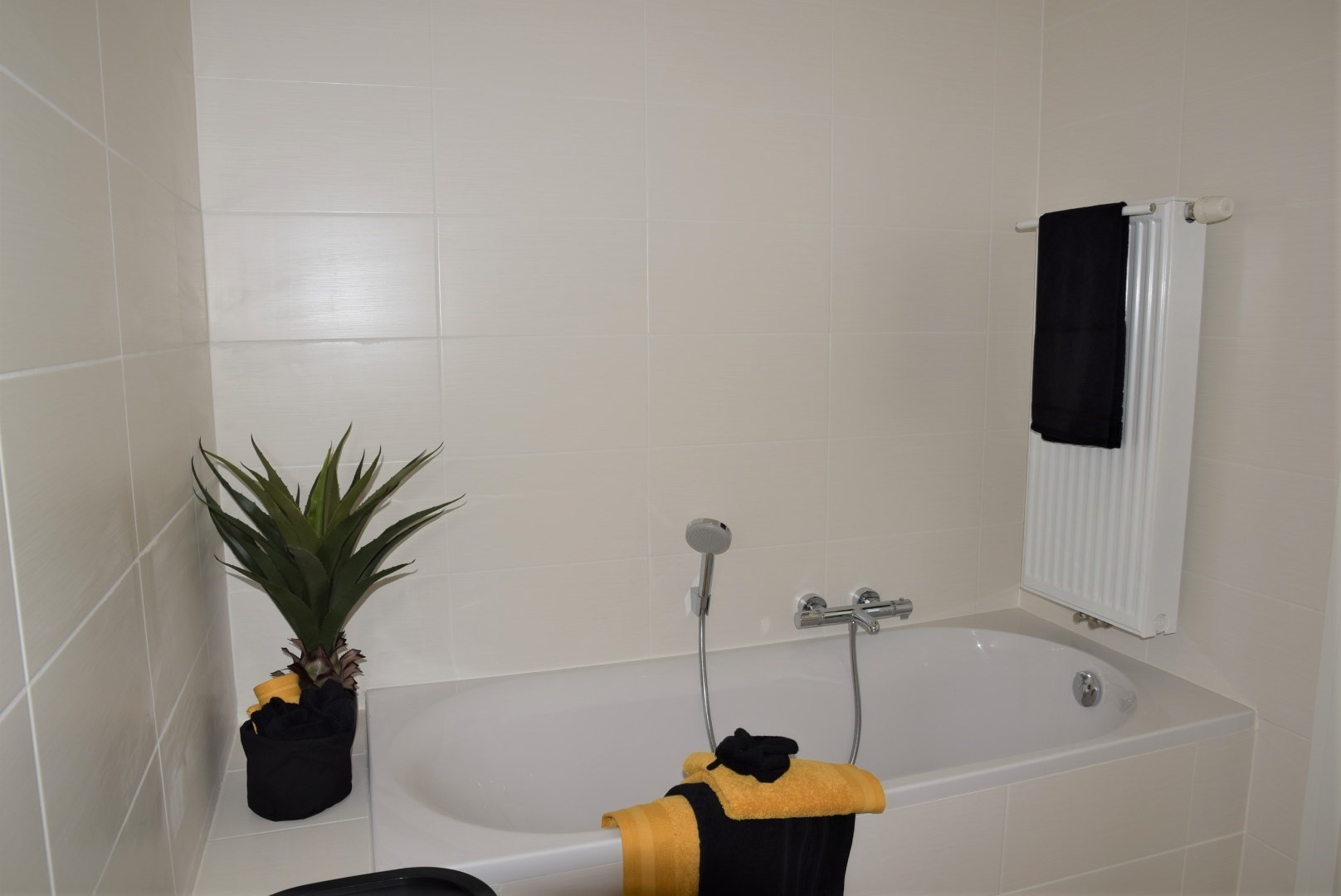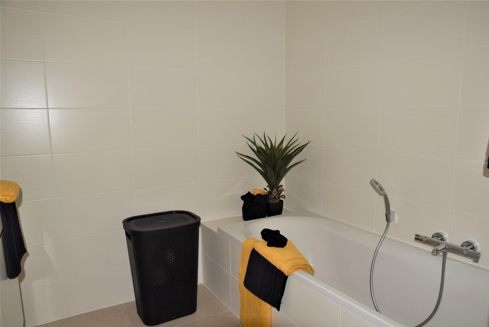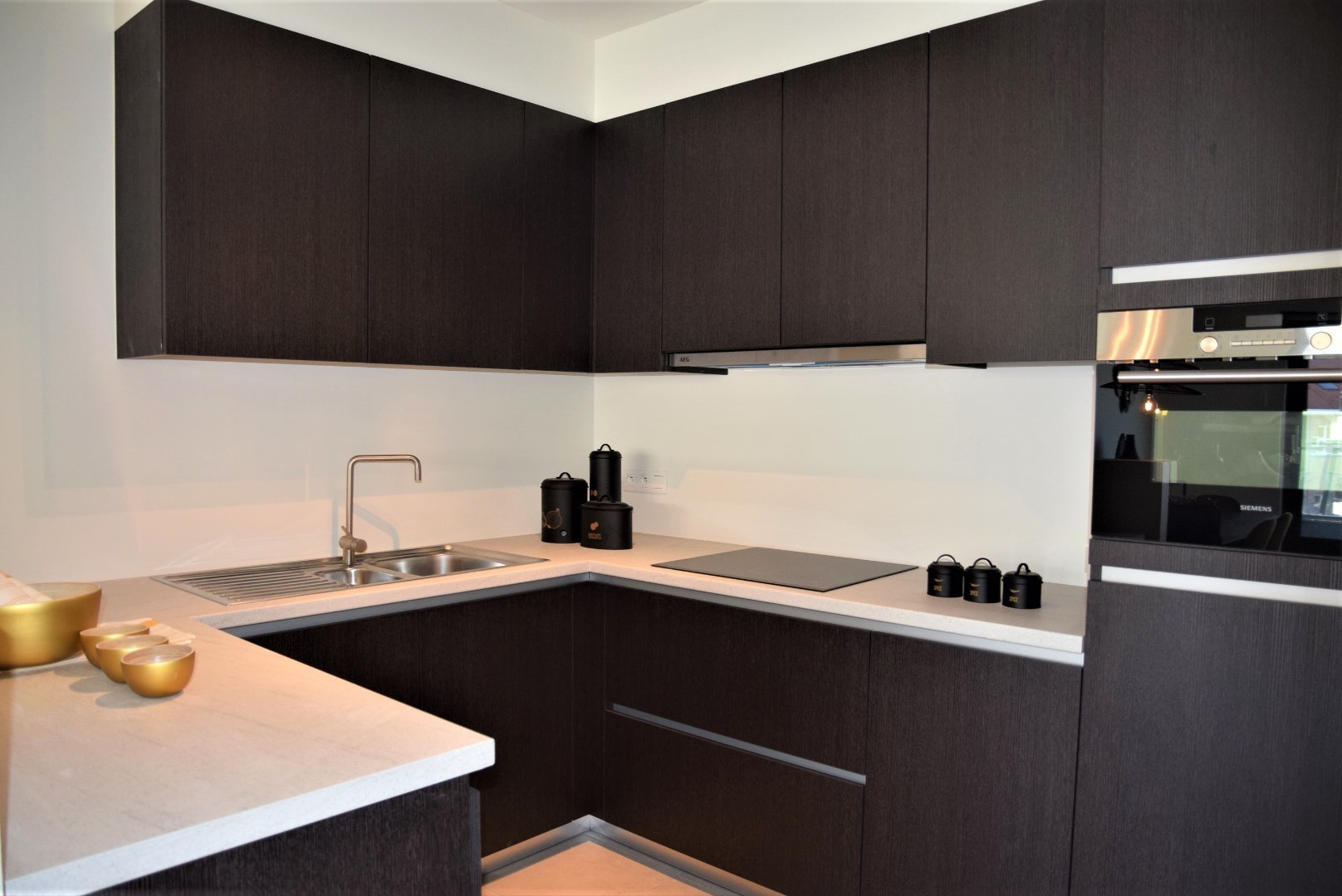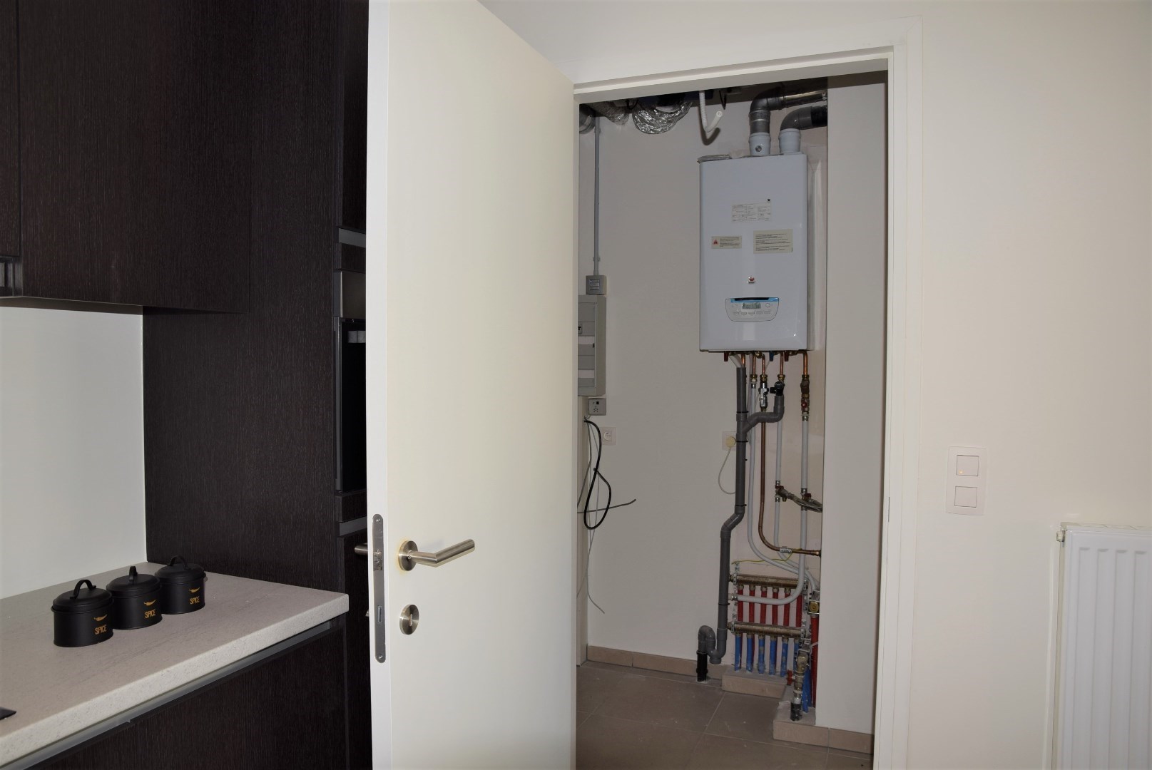 bestaande uit: inkomhal, vestiaire, apart toilet, grote woonkamer met open keuken en aangrenzend groot terras (24,45 m2), berging met wasmachine aansluiting, 2 ruime slaapkamers, luxueuze badkamer met ligbad en lavabo. Het complex is gebouwd onder moderne tijdloze architectuur en heeft verder aangelegde tuinen, grote gesloten garages, private kelders, uitzonderlijke thermische en akoestische isolatie, E peil tussen 45 en 65, luxueuze vloerbekleding, kwaliteitsvolle keuken en individuele verwarming op aardgas. Mogelijk om aan te kopen aan 6% BTW bij vaste bewoning.