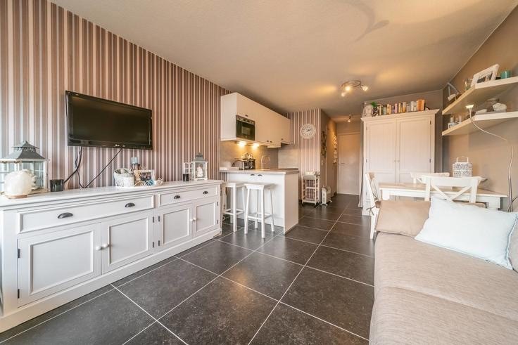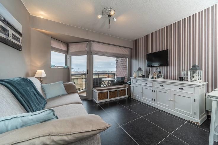 Vollständig renoviertes Studio im 8. Stock mit Terrasse und seitlichem Meerblick. Geräumige Terrasse mit schönem Meerblick. Schlafbereich, der mit einer Tür mit Etagenbetten abgeschlossen werden kann. Bad mit Badewanne, Waschbecken und WC. Wenige Meter vom Strand und der Leopold-I.-Promenade entfernt. Möglichkeit, pro WE oder mid-week zu mieten.