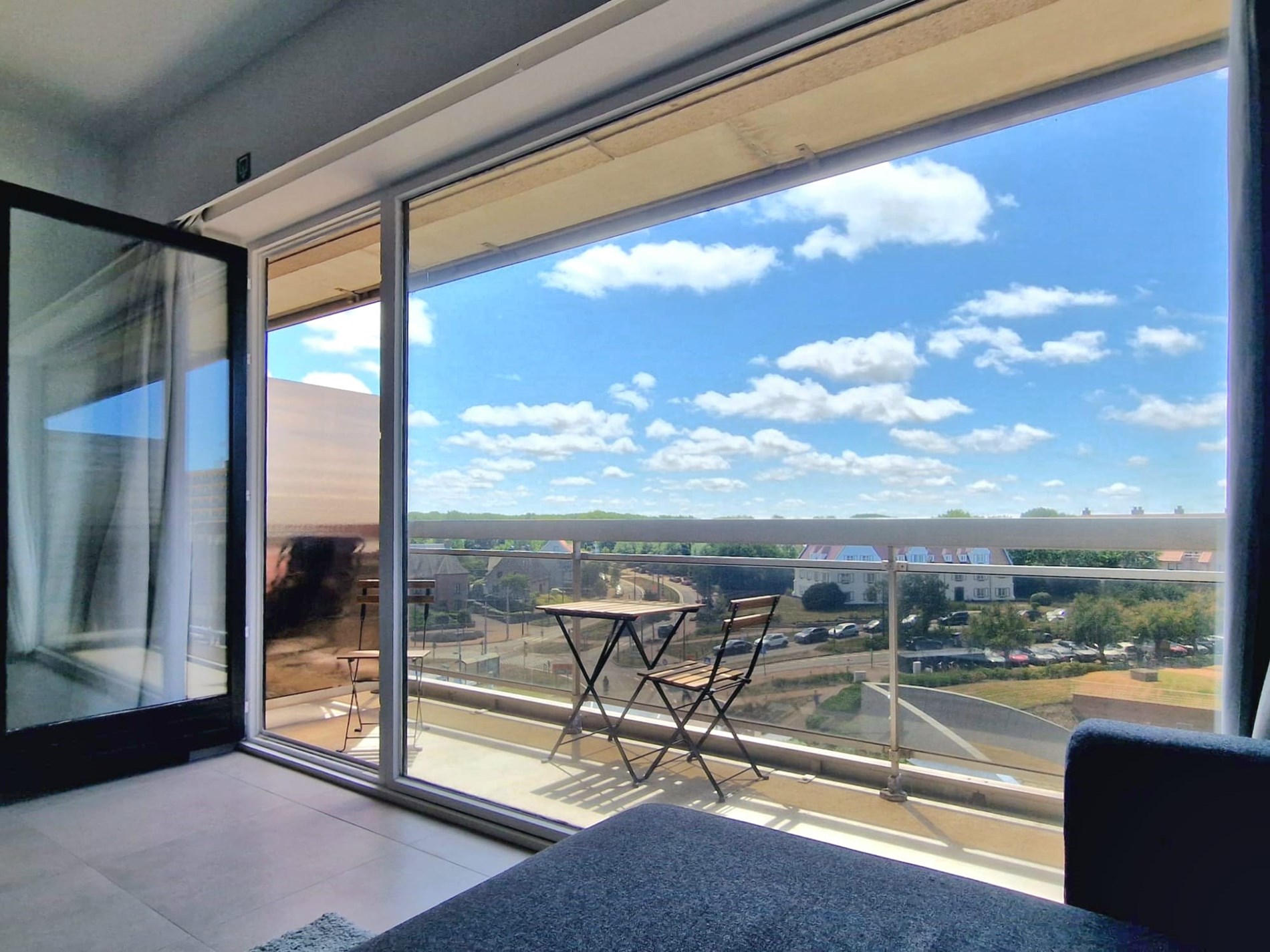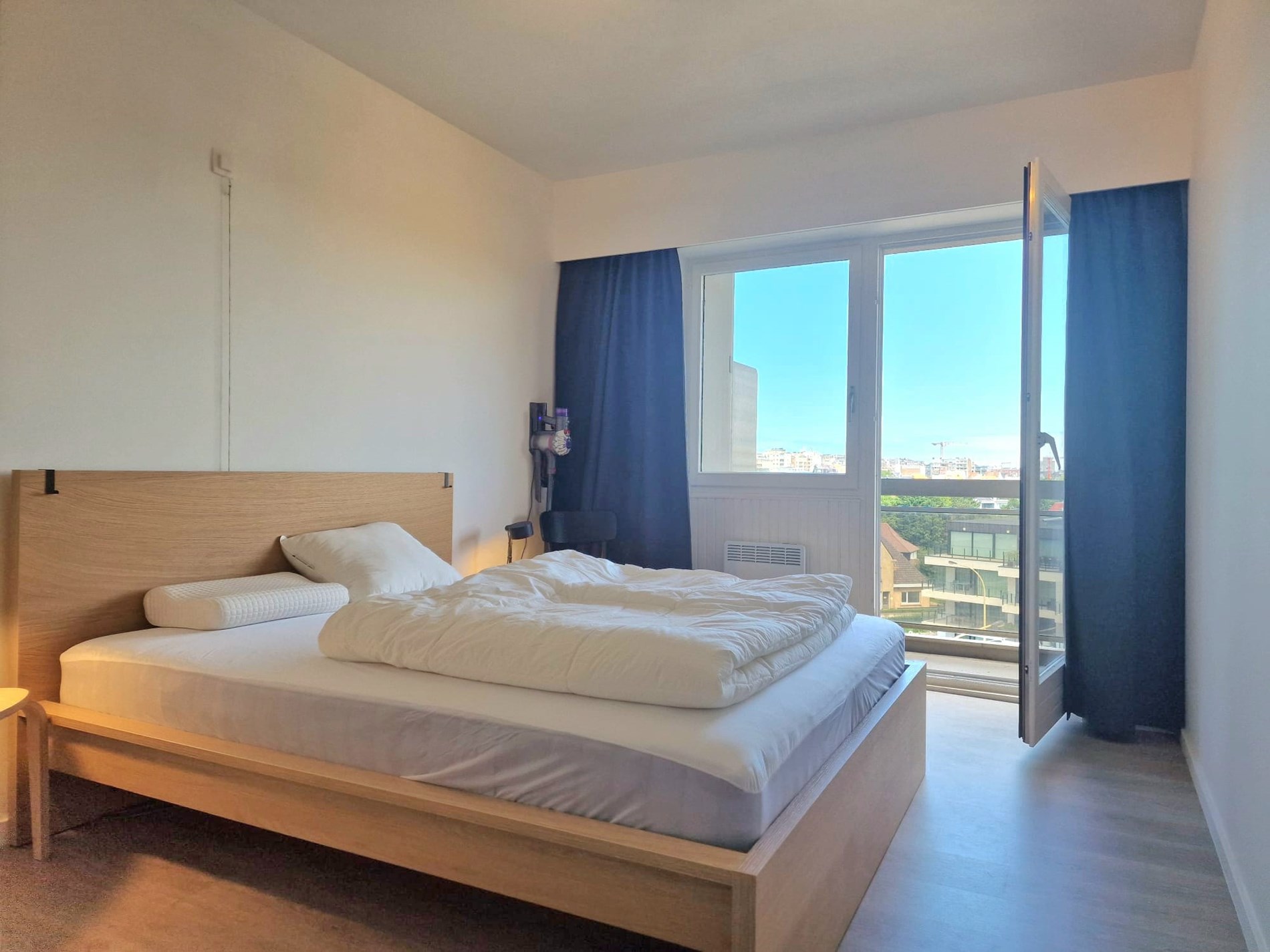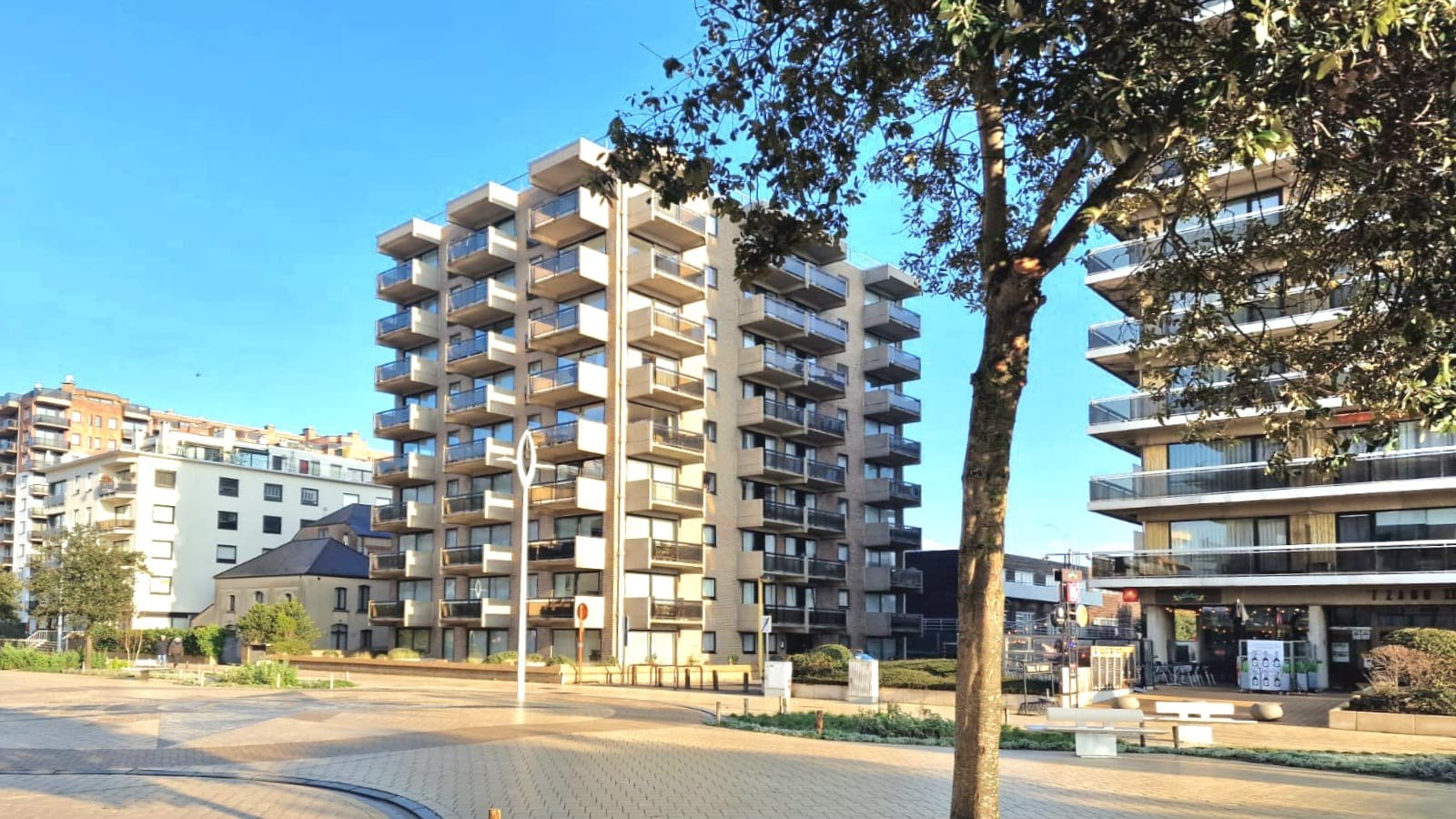 Wunderschöne, komplett renovierte Querschnittswohnung im 5. Stock mit 2 Terrassen und Blick auf die Esplanade, 2 Schlafzimmer mit Doppelbetten und Einzelbett. Badezimmer mit begehbarer Dusche. WIFI. Abgeschlossene Garage im Solaris (direkt neben Zand) im Preis inbegriffen!