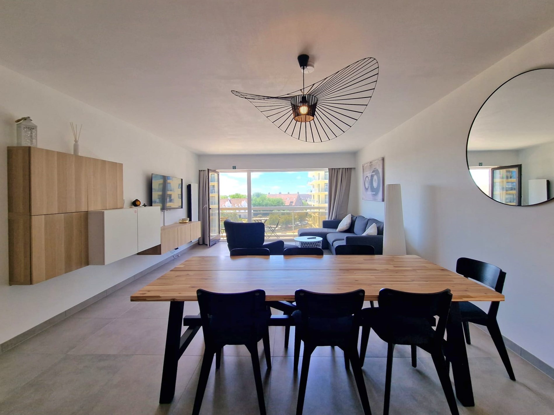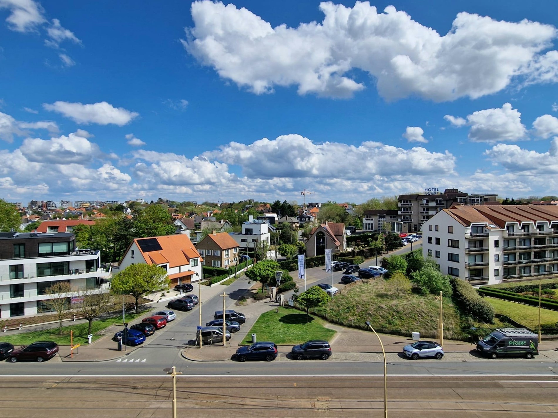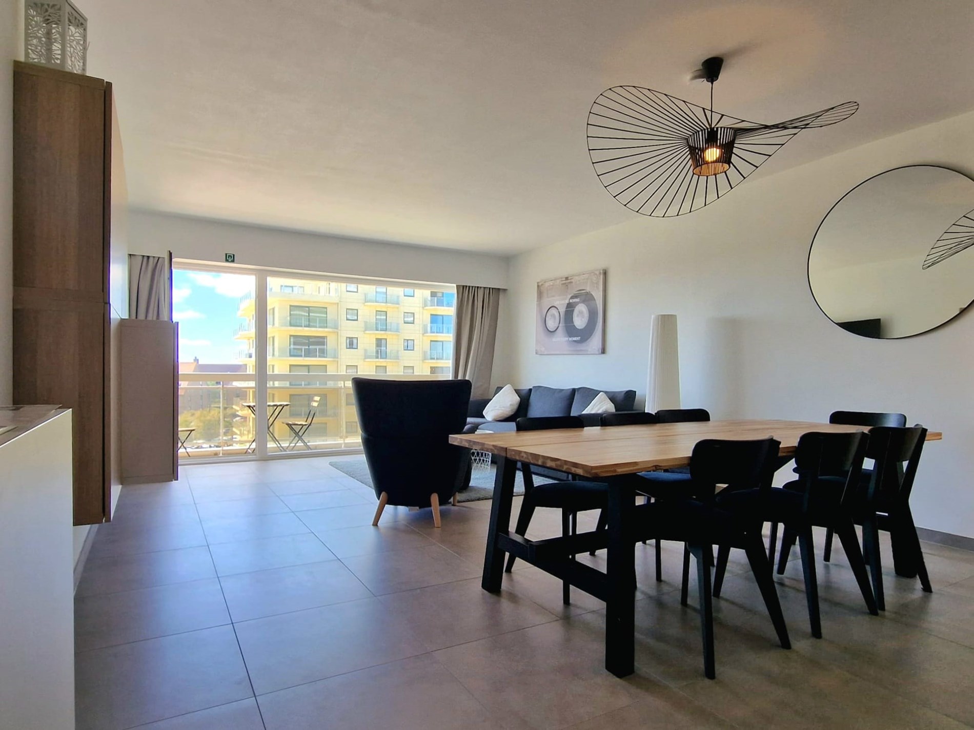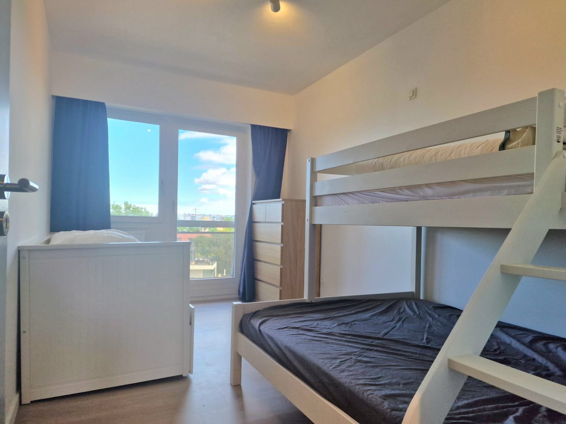 Wunderschöne, komplett renovierte Querschnittswohnung im 5. Stock mit 2 Terrassen und Blick auf die Esplanade, 2 Schlafzimmer mit Doppelbetten und Einzelbett. Badezimmer mit begehbarer Dusche. WIFI. Abgeschlossene Garage im Solaris (direkt neben Zand) im Preis inbegriffen!