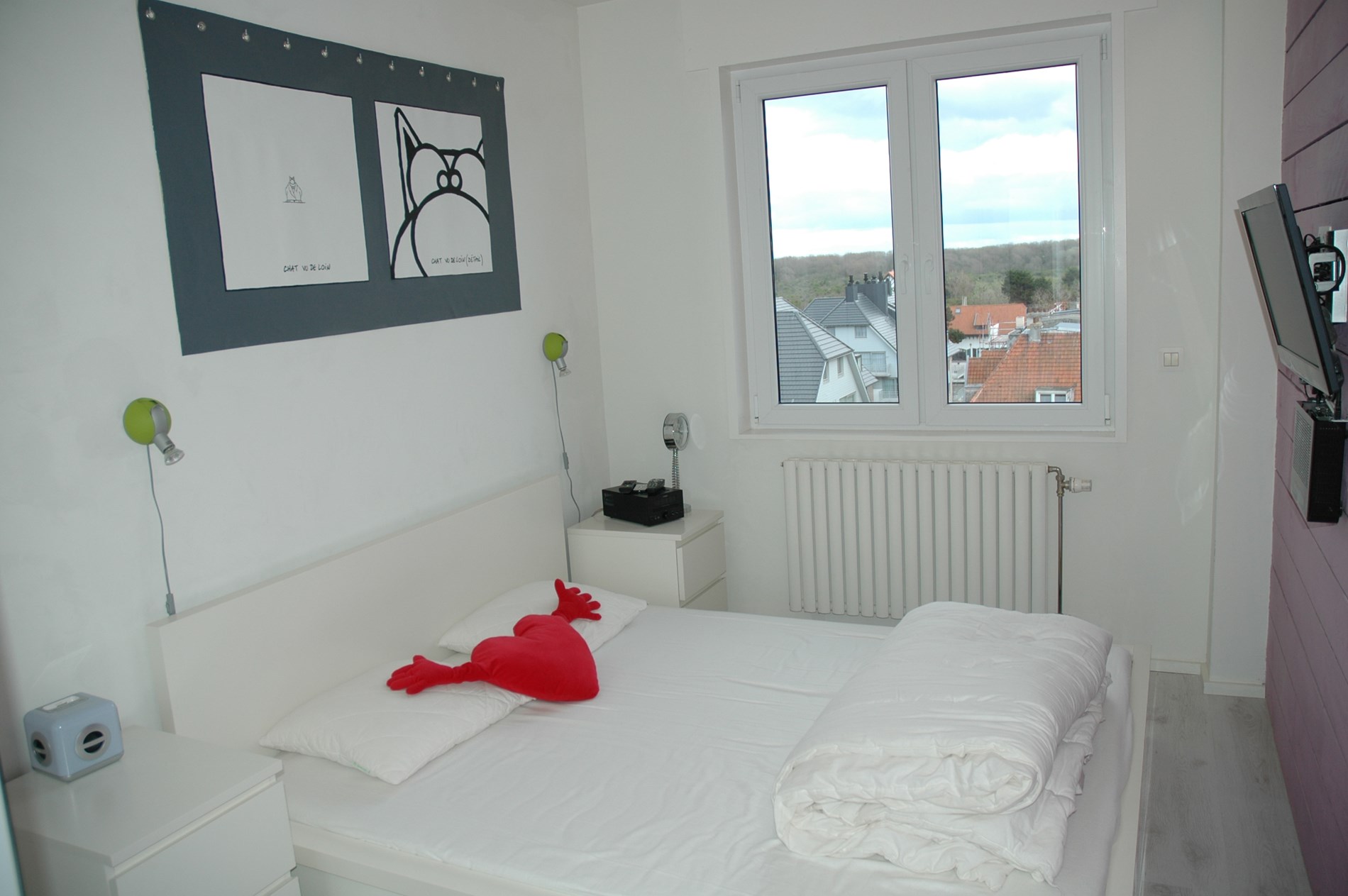 Lichtrijk modern appartement, zeer goed ingericht met alle comfort. Volledig uitgeruste keuken. Mogelijkheid om met 9 personen te slapen. 1 Slaapkamer met tweepersoonsbed, 1 slaapkamer met stapelbedden. 2 zetelbedden in de living. Badkamer. Apart WC. Vlakbij het centrum van De Panne. Lift. Huisdieren toegelaten mits schoonmaak. Op de 6de verdieping met frontale zeezicht. WIFI.