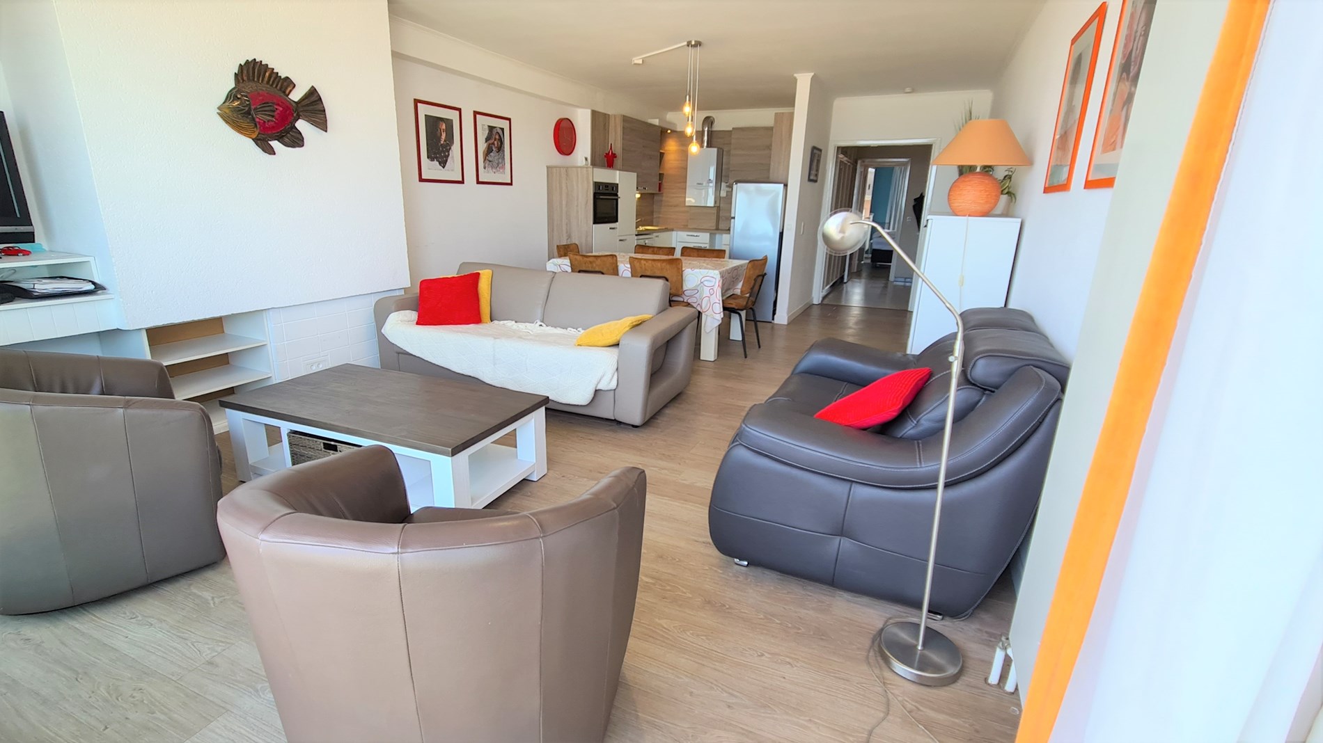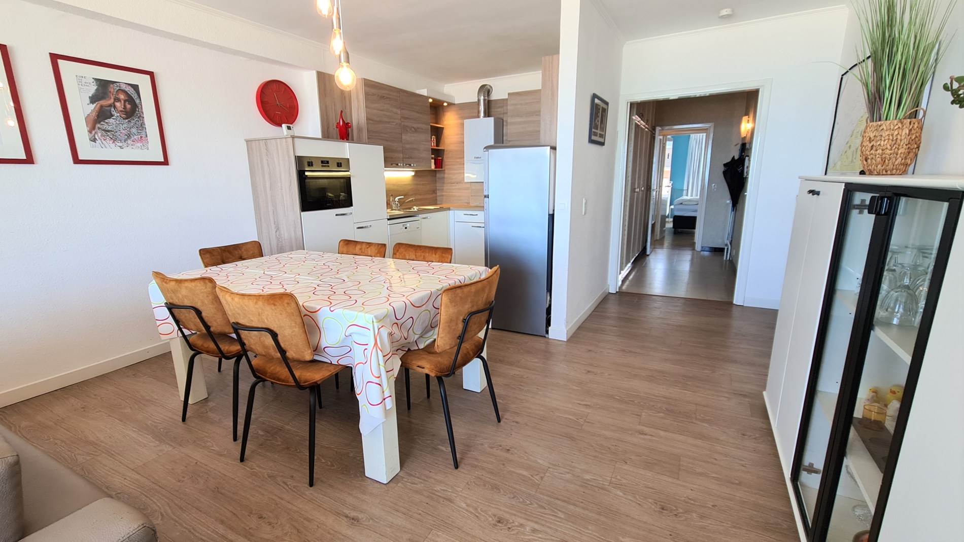 met frontaal zeezicht en 2 zetelbedden. Nieuwe moderne open keuken. Twee slaapkamers elk met een 2