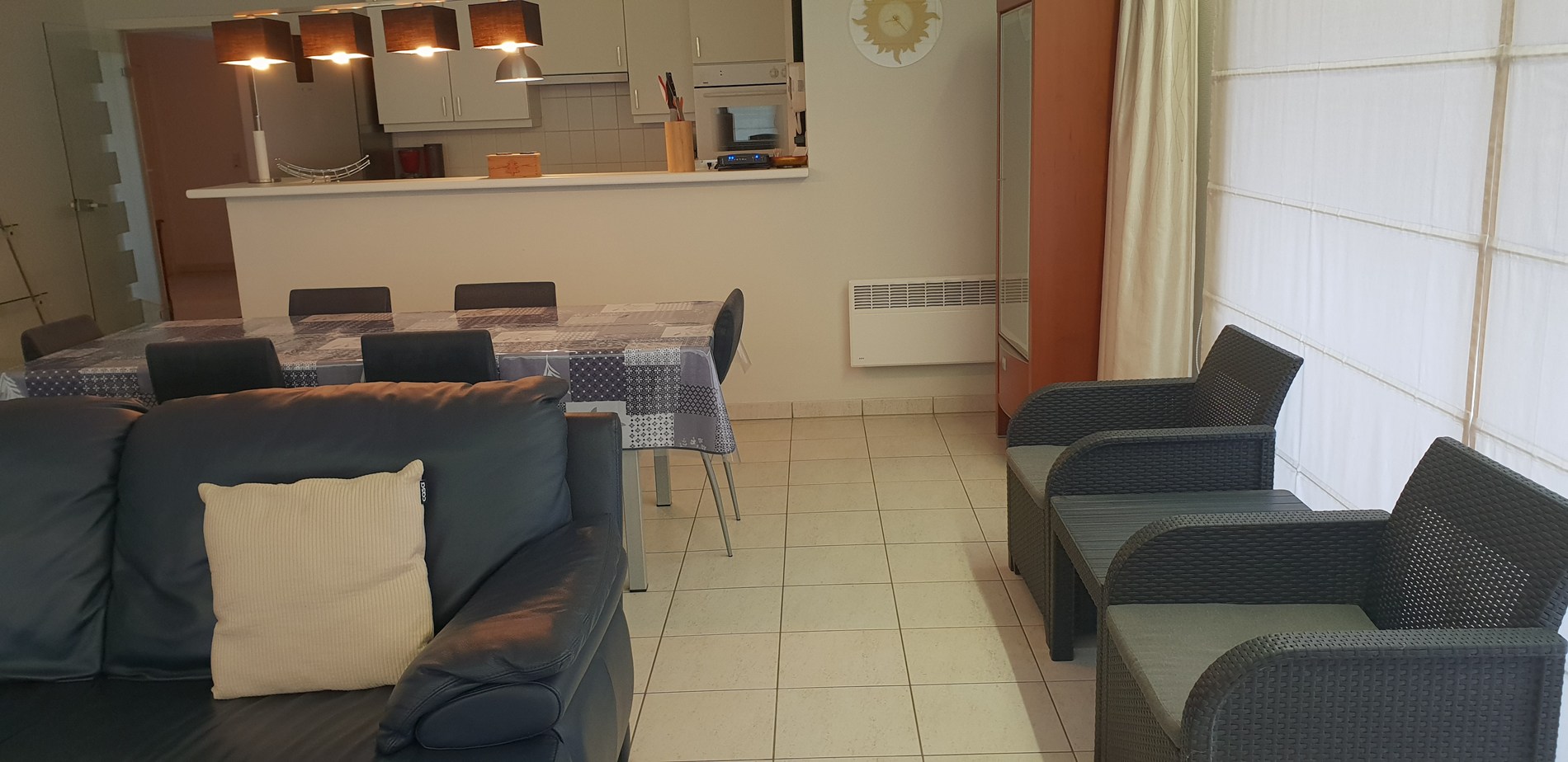 2 persoonsbed (140x200) (1x), 2 persoonsbed (160x200) (1x), traditionele oven (1x), microgolfoven (1x), stortbad (1x), inductie kookplaat (1x), koelkast met vriesvak (1x), diepvriezer (1x), vaatwas (1x), koffiezet (1x), enkele wastafel in badkamer (1x), apart toilet (1x), broodrooster (1x), waterkoker (1x), 2de badkamer met ligbad en toilet (1x), rechthoekige tafel (1x), terrasmeubelen (1x), donsdekens 2 personen 220x200 (2x), donsdeken 1 persoon 140x200 (3x), berging in appartement (1x), stofzuiger (1x), strijkijzer (1x), strijkplank (1x), gar. inbegrepen in huurprijs (1x), lift (1x), rolstoelgebruikersvriendelijk (1x), gerenoveerd (1x), stapelbed (3x1) (1x), vloer (1x), modern (1x), hoekappartement (1x), was-droogautomaat (1x), roken verboden (1x), digitale televisie - digibox (1x), televisie flatscreen (1x), kinderstoel (1x), wasrek (1x), betaalde verplichte opkuis (1x), nespresso (1x), forfait verwarming winter 75 euro/week (oct tem april) (1x), wi fi (1x)