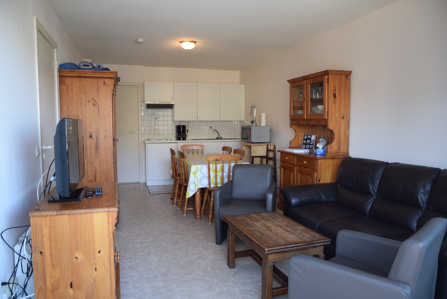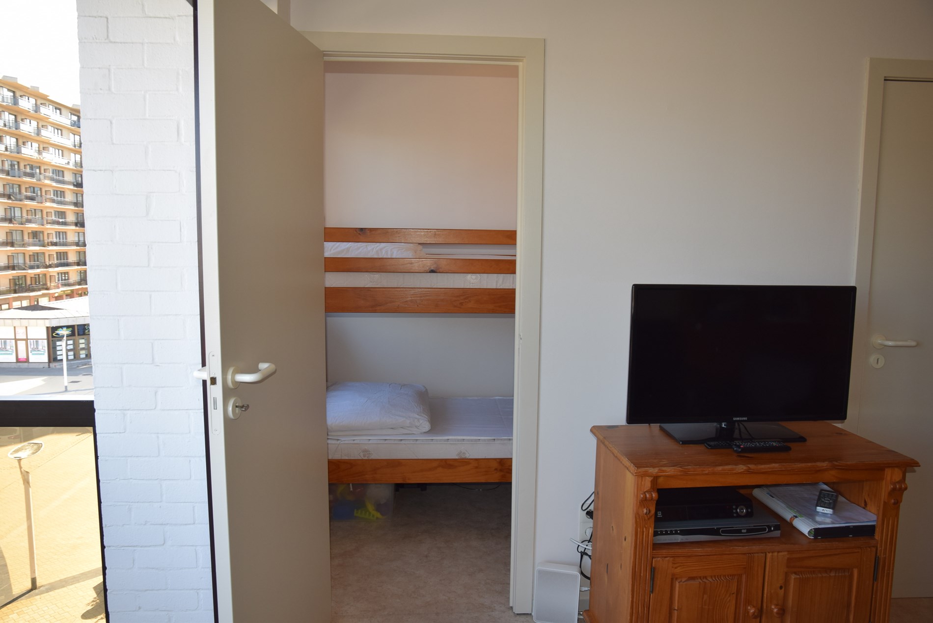 Verzorgd appartement op de 3de verdieping, zijzicht op het Esplanadeplein, kamer met tweepersoonsbedden, kamer met stapelbed. Zuidgericht appartement met een gezellige inrichting.